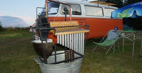 „To bola strašná náhoda, ako som sa sem dostal. Našiel som úplne maličký článok v novinách, že niekde pri Rimavskej Sobote sa bude z odpadu robiť umenie, tak som si zbalil veci a prišiel som,“ zaspomína si Šamorínčan na rok 1997, kedy sa na Letavách objavil po prvýkrát. „No a odvtedy som vynechal len jeden ročník,“ dodáva. Kaleidoskop, autíčko, ponorka, sova, robot, bicykel, to sú len niektoré z jeho výtvorov z jednotlivých ročníkov Letáv, ktoré z roka na rok priniesli niečo nové. Nové miesta, ľudí, dielne, skúsenosti, kamarátstva, zážitky. „Pamätám si, ako sme prvý rok vytvárali všeličo možné aj nemožné zo šrotu, ktorý priviezli na Kurinec. Strašne ma vtedy zo zvárania boleli oči ale stálo to za to, Letavy ma oslovili. Vládla tam skvelá atmosféra a tá im ostala dodnes, hoci sú Letavy teraz už niekde úplne inde ako pred rokmi,“ hovorí Peter. Ako tvrdí, do tohto regiónu by sa možno nikdy nedostal, nebyť tábora, kvôli ktorému pricestuje pravidelne, posledné roky na svojom retro buse. „Zo začiatku som bol v stane a ako naschvál vždy pršalo,“ smeje sa. „Už vtedy som sníval o takomto buse. Je to moja srdcová záležitosť,“ priznáva Peťo, ktorý dnes žije a pracuje v Rakúsku. A vlastne, aj študuje. „ Na gymnáziu som bol stále spájaný s výrazom design. Vtedy to slovo bolo také trendy. Vždy som po tom túžil, ale nikdy som to neskúsil, lebo sa mi zdalo nemožné aby ma zobrali na také štúdium,“ hovorí poslucháč tretieho ročníka priemyselného dizajnu na univerzite vo Viedni. Jeho rozprávanie o tom, ako sa dostal do triedy svetovo uznávaného profesora Hartmuta Esslingera, by mohlo byť jedným z tých o splnených snoch na prvý pohľad nesplniteľných či o tom, ako sa všetko dá, keď sa veľmi chce. Peťovým cieľom je vymyslieť raz produkty, ktoré by pomáhali iným, niečo, čo tu ešte nebolo a radikálne by mohlo zmeniť či zjednodušiť život napríklad ľuďom, ku ktorým osud nebol veľmi štedrý.