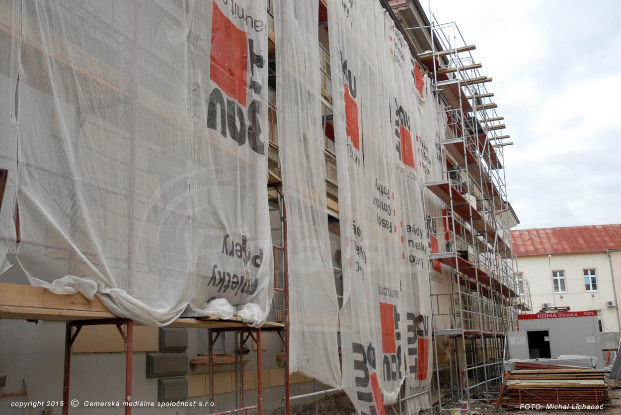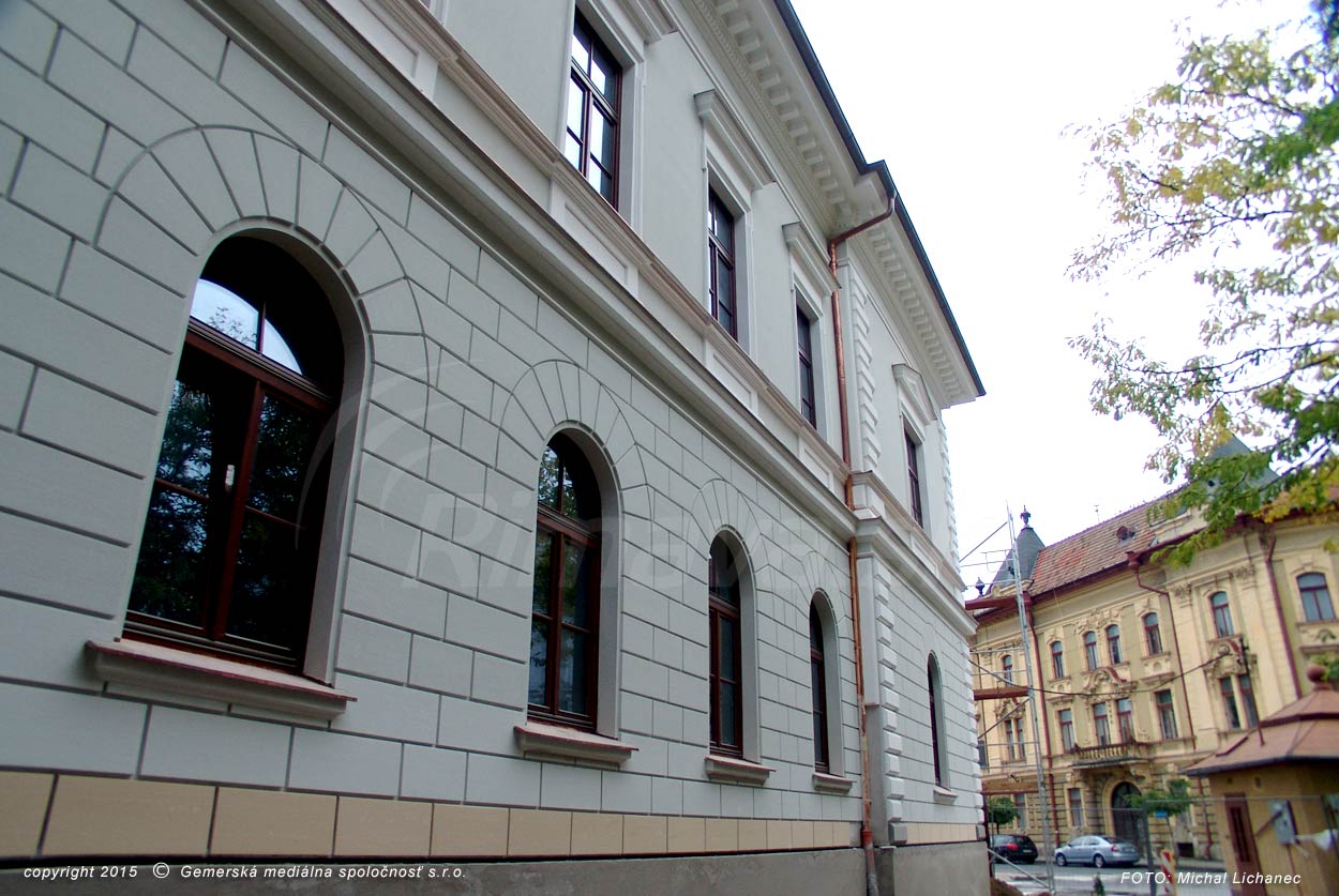 „Fasáda je na 95 percent hotová. Robia sa len dokončovacie práce okolo soklov a časť náterov,“ informoval Rimava.sk dozorca stavby Jozef Kozák. Ako spomenul, s fasádou sa bolo treba poriadne vyhrať. „Myslím si však, že sa to celkom podarilo, budova zapadne do okolitého prostredia,“ podotkol. Podľa jeho slov práce konzultovali aj s pamiatkármi a teraz už aj oni realizujú niektoré štukatérske aj odborné práce napríklad na „balustráde“ balkóne na priečelí budovy.