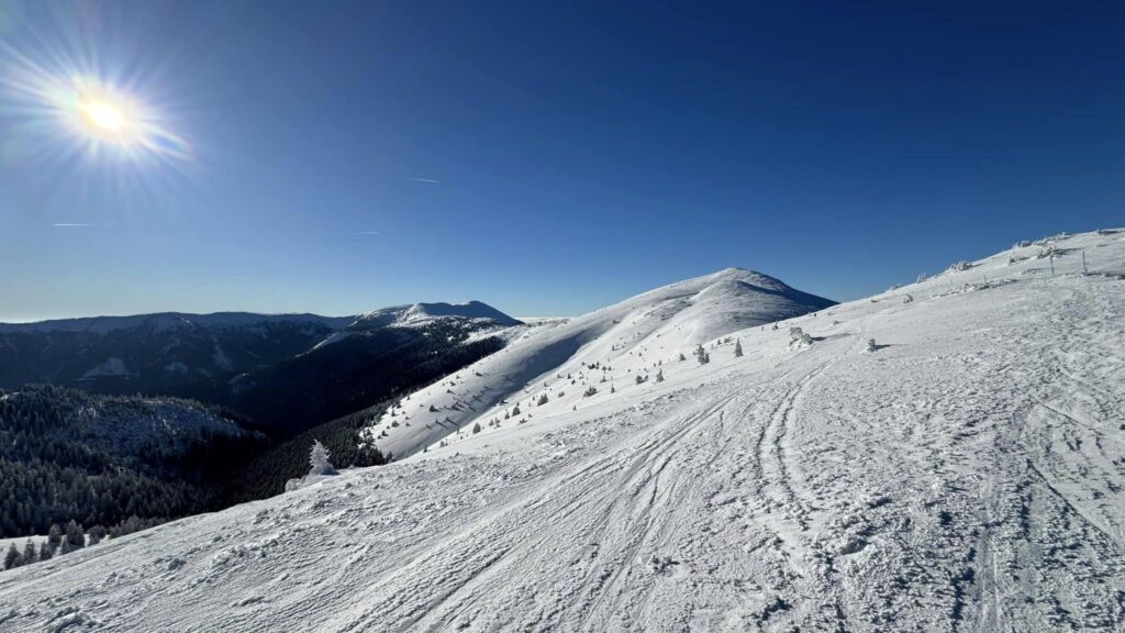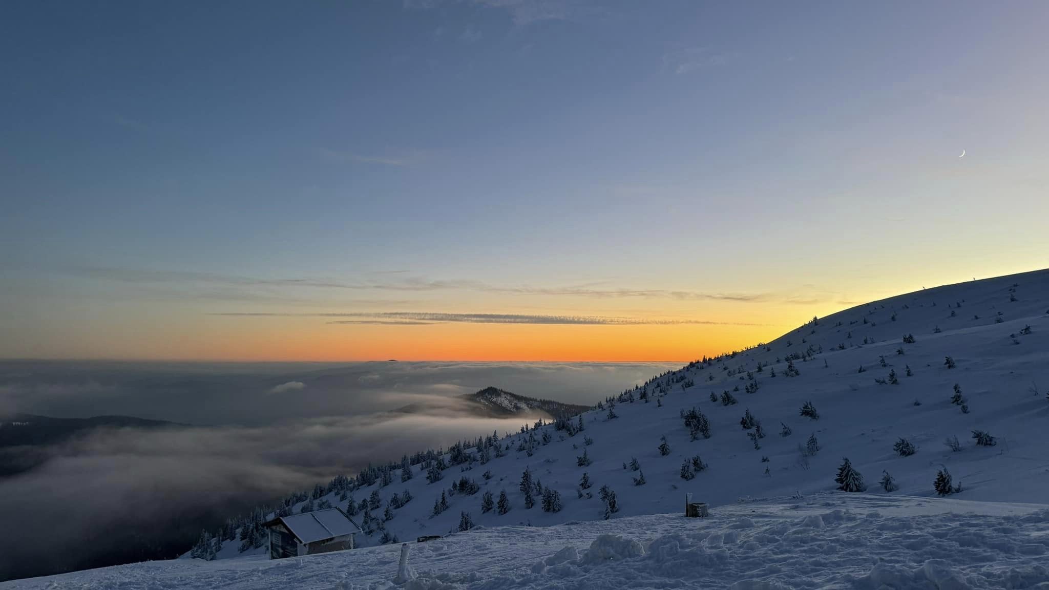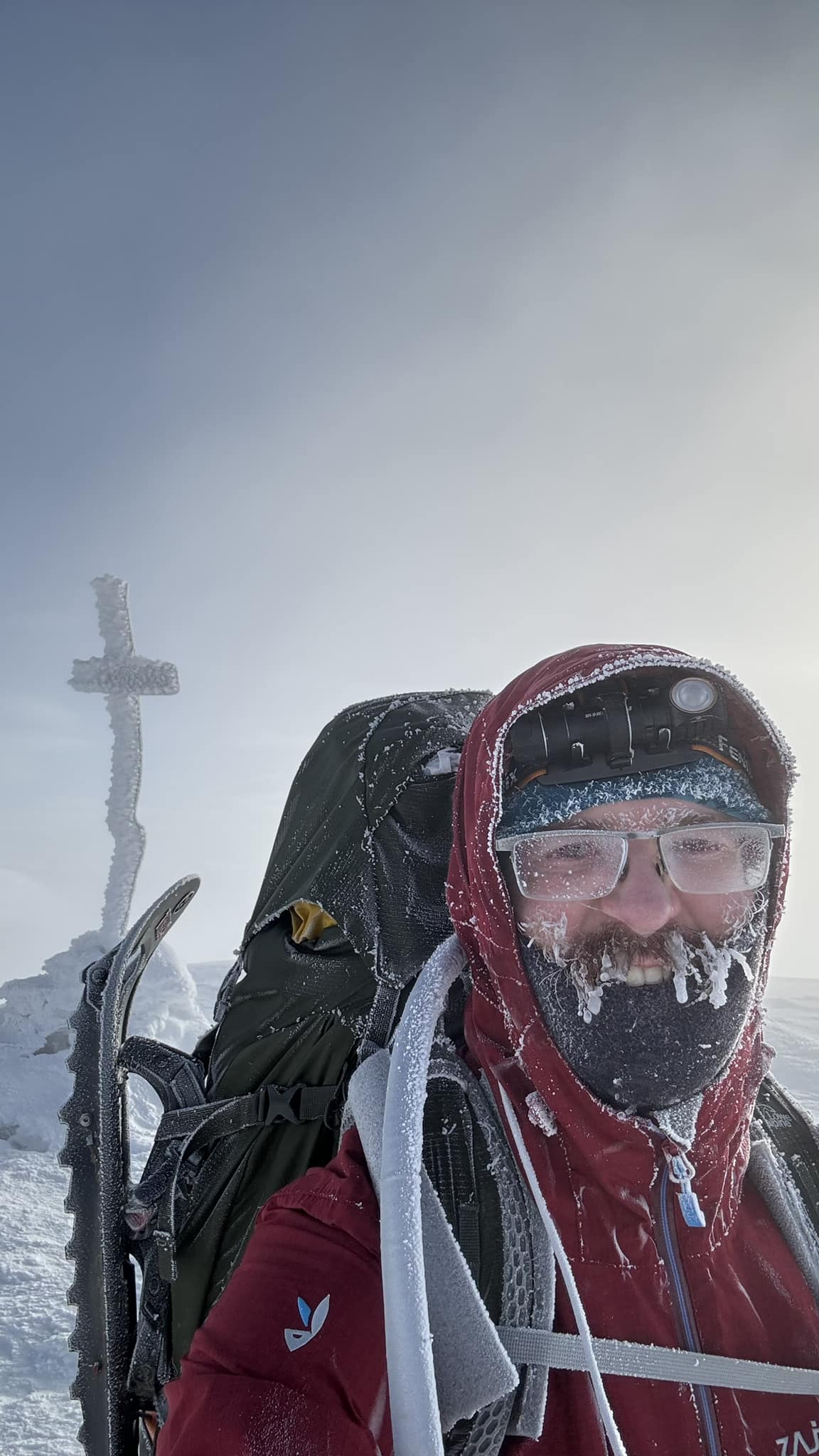 "Ani Kráľova hoľa nemá tak ťažký nástup na hrebeň. Každopádne obul som hneď ráno technické mačky, pretože intuícia mi vravela, že reťaze nebudú postačovať a nemýlil som sa. Hneď na prvom kilometri sa zahryzli do ľadu jak nôž do masla a mal som istejší krok. Po hodine som sa dostal nad úroveň kosodreviny a zrazu sa stopa zatočila kolmo do svahu doľava. Pozerám sa, tyče zimného značenia idú tiež smerom hore, tak reku zaťať zuby a len ísť. Počasie sa nie a nie umúdriť, vietor fúkal oblaky dole do doliny, aj nejaký ten sneh sfukovalo," napísal Michal na sociálnej sieti.