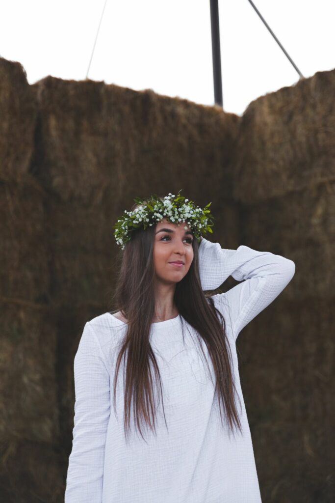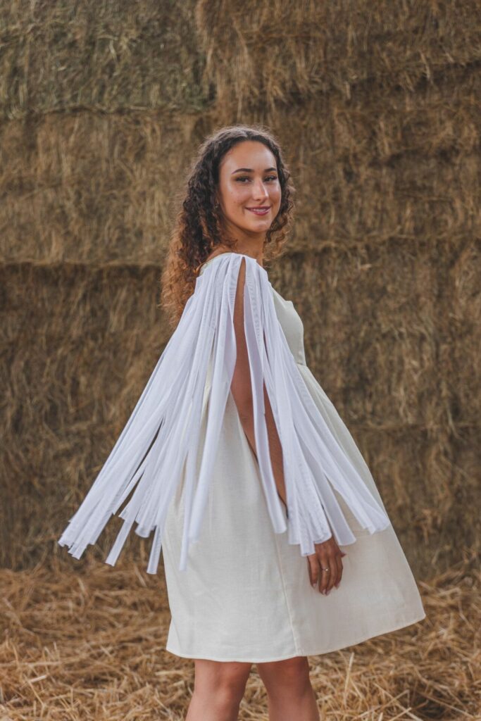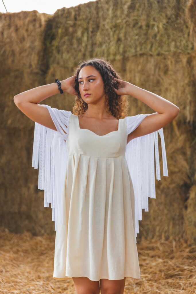Pri novej kolekcii stavila na návrat k prírode a na materiály, ktoré sa jej najviac podobajú. „Použitého je veľa ľanu. Snažila som sa pri tvorbe o prirodzenosť. Niektoré kúsky sú na bežné nosenie, ďalšie tiež, keď chceš žiariť. Prvýkrát ale máme aj svadobné šaty, v promo videu sme teda mali malú svadbu. Obliecť sa ale dajú aj na inú spoločenskú udalosť,“ hovorí s úsmevom.