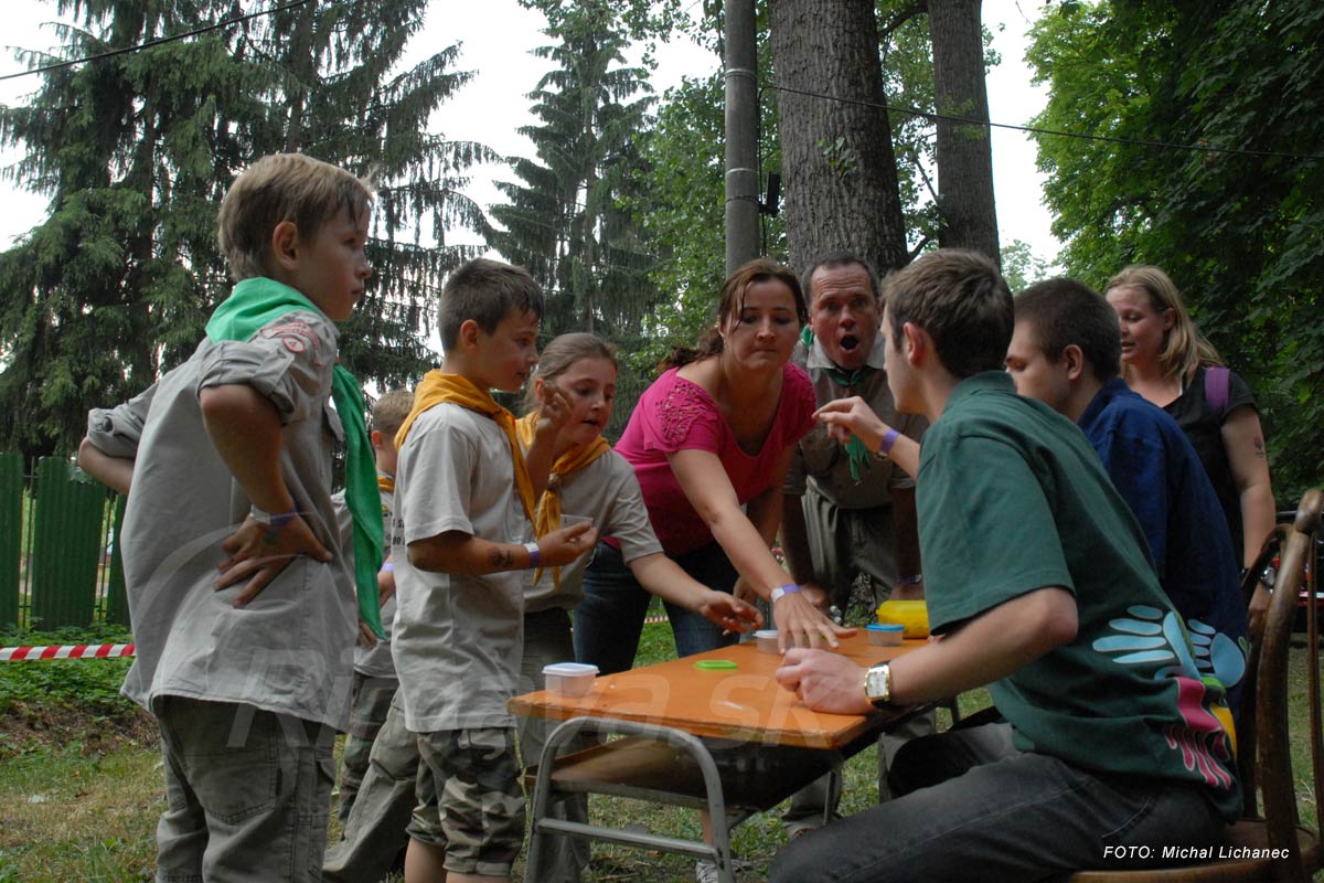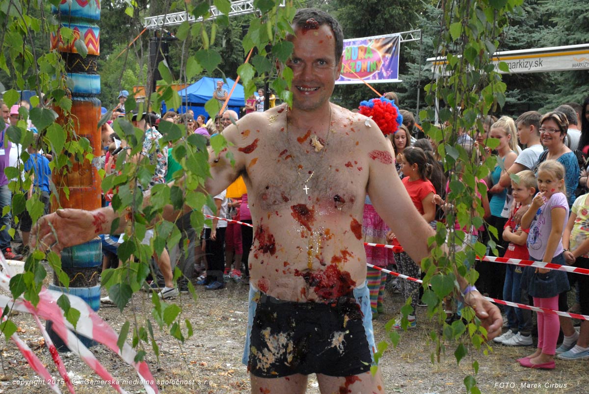 V podvečer sa všetci tešili na detsky veľmi obľúbenú súťažnú disciplínu. Dospelácka totemova „obeta“ bola opäť plná múky, vajíčok, kečupu, horčice, lekváru a iných chutných ingrediencií. Dospelí ukázali svoju odvahu a deti svoju presnú mušku, ktorej výsledok stál za to 🙂