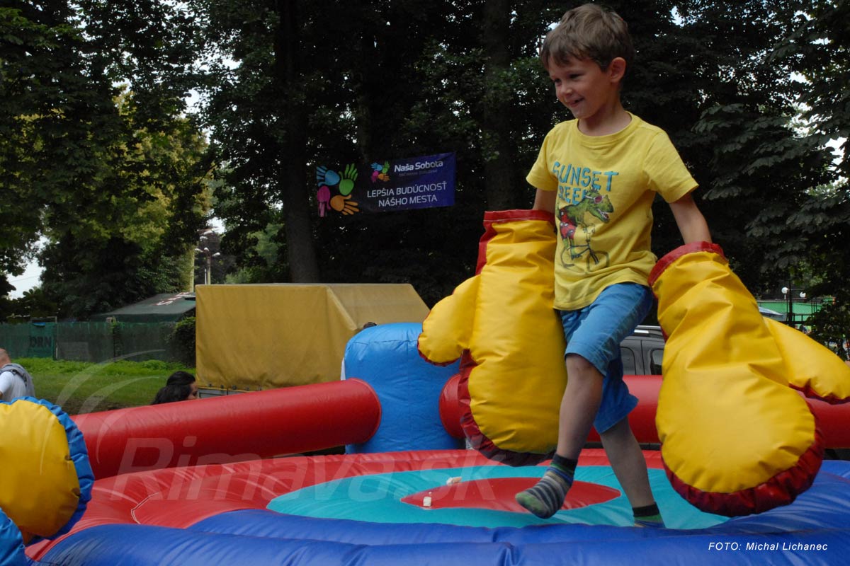 Na parkovisku pri amfiteátri so zatajeným dychom nielen tí najmenší pozorovali napínavé ukážky hasičov. Na pódiu zase s obdivom sledovali exhibíciu bojového umenia ju jutsu a judo. Deti roztancovala mladá cvičiteľka Zumby, Fanny Madarászová, špeciálny hosť Ibi Maiga sa so svojimi piesňami postaral o rozcvičenie hlasiviek všetkých prítomných. So spisovateľkou Martou Hlušíkovou sa malé ratolesti mohli preniesť do rozprávkového sveta. O dobrú náladu sa po celý deň postarala moderátorská dvojica, večne vysmiata Stanka Kašperová a vždy dobre naladený Cyril Žolnír.