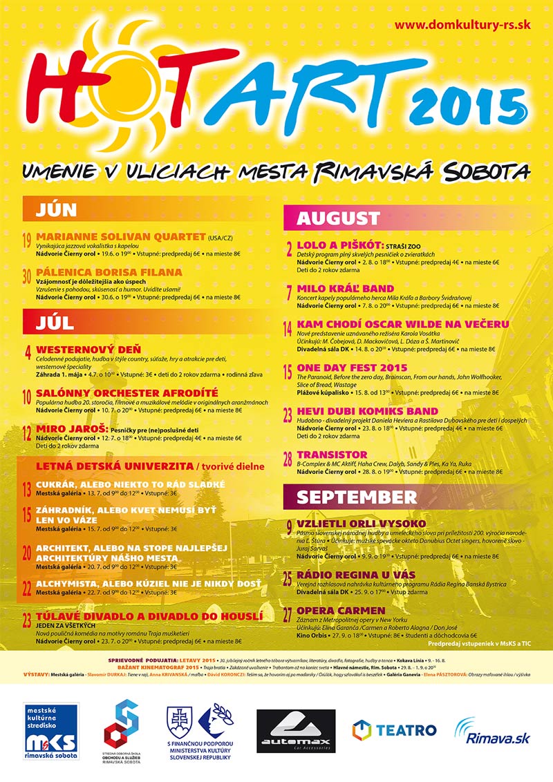 Projekt HOT ART – umenie v uliciach mesta pre Vás pripravuje Mestské kultúrne stredisko s finančnou podporou MK SR a miestnych podnikateľov.