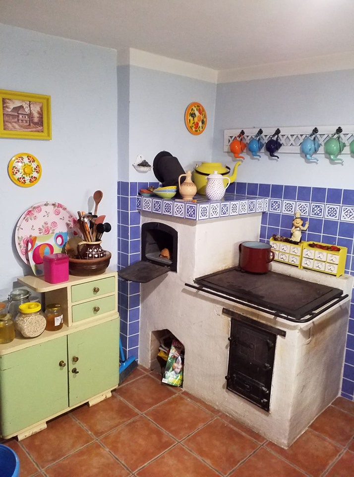 Chata postavená z váľkov pôsobí útulne. Interiér kuchynky je pôvodný a podľa Vandy zrekonštruovaný ako kedysi. Poznamenala, že najviac spomienok jej pripomína pôvodná pec, z ktorej sa šíri príjemné teplo, a na ktorej ju stará mama učila čistiť a rozkurovať pec. Okrem spoločenskej miestnosti a jedálne je ďalšou, pre Vandu dôležitou miestnosťou pristavený ateliér kde s priateľmi spoločne tvoria. „Chodím si sem vyvetrať hlavu a s priateľmi tvoriť. Je to taká duša chalupy a moja srdcovka," dodáva Vanda, ktorá sa opravami, maľovaním a samotným reštaurovaním nábytku zaoberá už od detstva. Jej obľúbenými sú lavice či hokerlíky. Tým starším vracia nový život a novo vyrobeným dodáva patinu. Podlahy a steny sú maľované, omietky symbolizujú minulosť a podlaha súčasnosť. „Jedno bez druhého nevie existovať," podotkla chalupárka, ktorej v tomto smere pomáha spolutvorca Peter. Vekové omedzenia v ich tvorení pritom nemajú, dôkazom toho je aj jej 78-ročná mamina Mária.