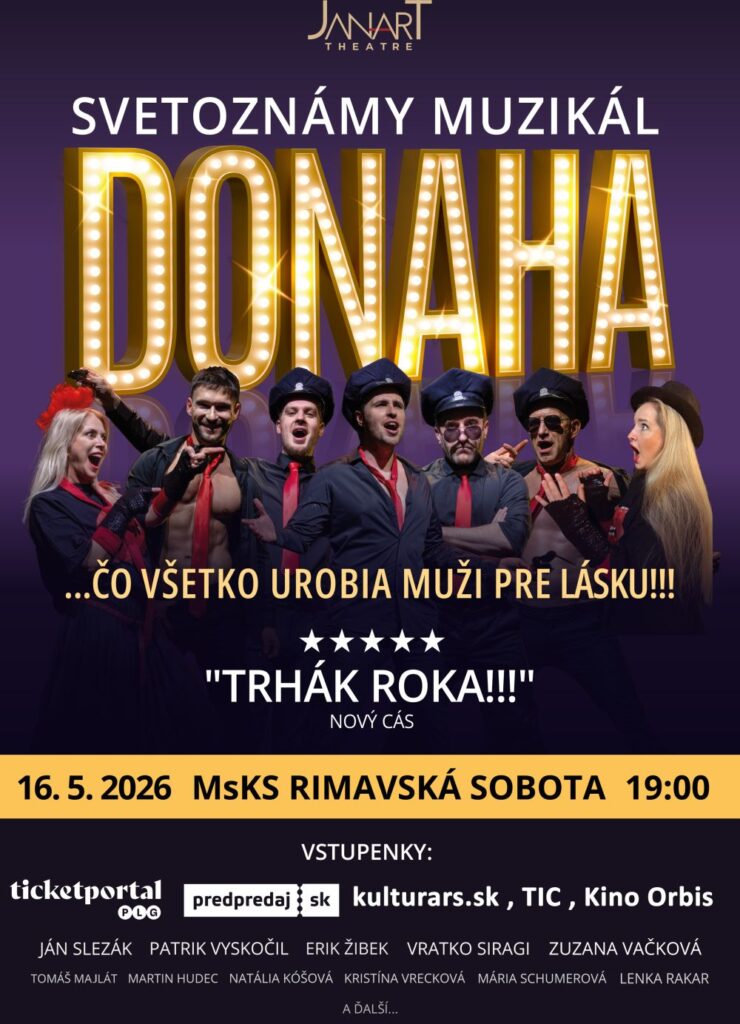 Do Rimavskej Soboty mieri jeden z najúspešnejších slovenských muzikálov súčasnosti. DONAHA, pod režisérskou taktovkou Jána Ďurovčíka, sľubuje divákom večer, na ktorý sa nezabúda.