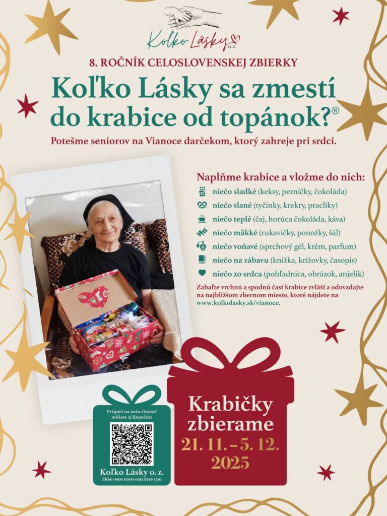 Existujú ľudia, ktorí svojou pokorou a neúnavnou prácou pripomínajú, že dobro sa nestratilo. Jednou z nich je aj Daniela Köbolová, koordinátorka vianočnej zbierky „Koľko lásky“ pre veľkú časť okresu Rimavská Sobota. Už siedmy rok otvára nielen krabičky od topánok, ale najmä srdcia ľudí, ktorí sa rozhodli potešiť seniorov v domovoch aj osamelých starkých.