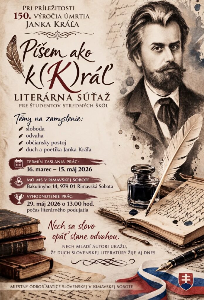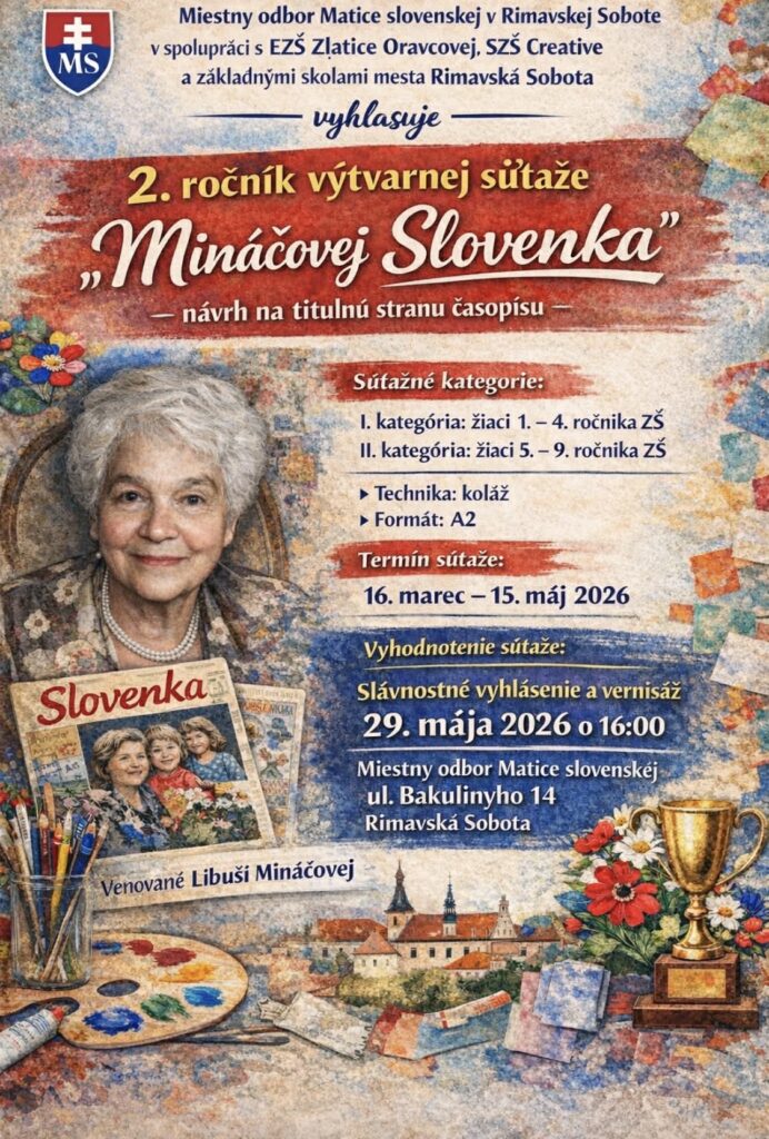 Miestny odbor Matice slovenskej v Rimavskej Sobote prichádza aj tento rok s aktivitami, ktoré majú mladým ľuďom priblížiť slovenskú kultúru, literatúru a významné osobnosti našich dejín. Pre žiakov základných škôl a študentov stredných škôl vyhlásil dve súťaže – výtvarnú aj literárnu – ktoré majú podporiť tvorivosť a zároveň pripomenúť výrazné postavy slovenskej kultúry.