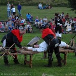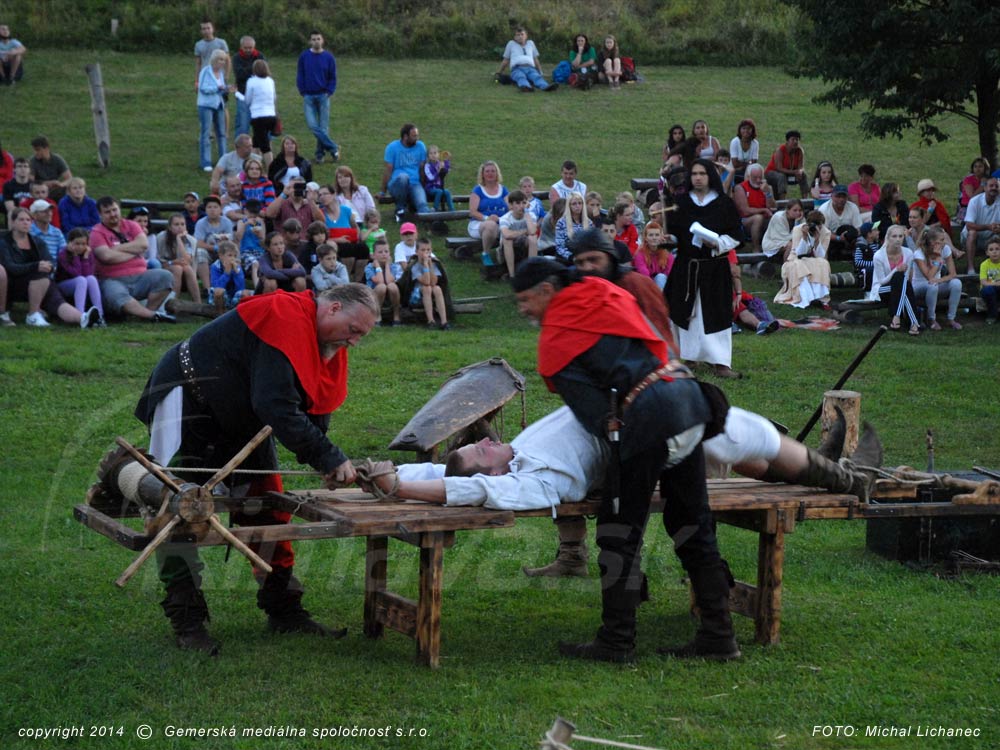 [su_media url="https://www.youtube.com/watch?v=-Pz6ynmcODE" width="600" height="388"]Na lotrov čakal stredoveký súd a mučenie, rinčali zbrane, hodovalo sa pri stredovekých jedlách. Hostí bavili šermiarske skupiny Defensores z Fiľakova, Chevalier z Levíc, Virfortis zo Zvolena a Taurus Ater z Martina aj pôvabné tanečnice z Femina Fortis.