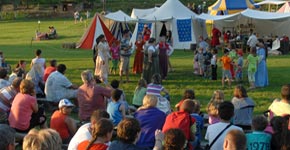 Celým okolím sa rýchlo rozniesla správa, že kráľ Žigmund bol na poľovačke a pri Mojíne zablúdil. Pre vzácneho hosťa tu však rýchlo rozložili stredoveký tábor a pripravili nevídanú hostinu, bohatý program, zábavné scénky, vystúpenia sokoliarov a dokonca aj ohňovú šou. Kráľ sa usmieval, veď všade vládla priateľská a rodinná atmosféra a až do večera sa schádzali návštevníci zblízka aj zďaleka, malí aj veľkí. Nuda v žiadnom prípade nehrozila. Na najmenších čakali zvieratká, hry, súťaže, ukážky súbojov a napokon aj samotné deti boli zverbované do armády, do boja proti rytierom. S obdivom všetci sledovali prelety dravých vtákov a kráľ sa veru veľmi zaujímal o domácich Sokoliarov Kanátovcov, keď sa dopočul, aké úspechy majú doma aj v zahraničí.