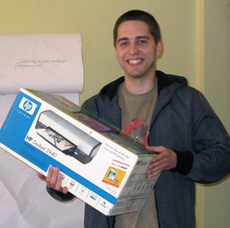 Igor Antalík, víťaz marcovej „facebook-ovej“ súťaže o farebnú tlačiareň, si dnes v redakcii vyzdvihol svoju výhru. Mladý študent architektúry ako fanúšik Rimava.sk na Facebooku najrýchlejšie napísal odpoveď na súťažnú otázku a stal sa majiteľom novej tlačiarne.