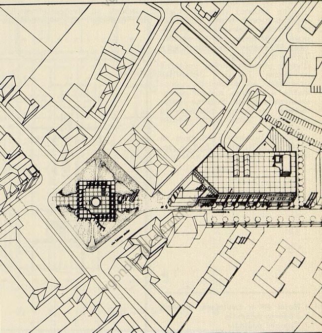 Medzi obchodným domom a kostolom by vznikla nová pasáž ako spojnica k parkoviskám a ďalším objektom občianskej vybavenosti. Objekt by bol riešený ako štvorpodlažná budova so zásobovaním cez suterén. Vonkajší tvar mal rešpektovať historickú architektúru. Jeden z objektov na ul. B. Bartóka by bol zakomponovaný do obchodného domu. S blízkou tržnicou mal Prior vytvoriť atraktívne obchodné centrum.