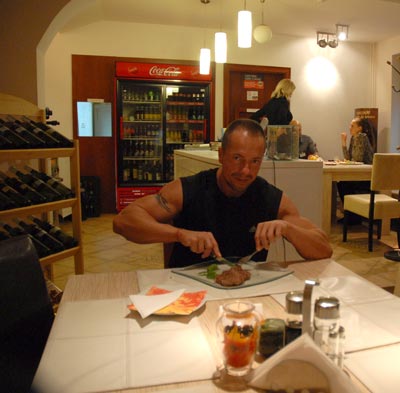 Drina, pot, nervy, hlad, vyčerpanosť - tak by sa to dalo zhrnúť pár slovami. V prvej fáze som sa zameral na svalový rozvoj a jeho kvalitu.. Dôkladne som si dal záležať na slabších svalových partiách, aby telo bolo v maximálnej symetrii a v objeme. V tejto fáze sa moja váha pohybovala medzi 85 a 90 kg. V druhej fáze som sa zameriaval na formovanie a tvarovanie svalových skupín pri váhe cca 80-85kg no a v tretej fáze som mal na starosti znížiť na minimum medzisvalový a podkožný tuk a udržať v maximálnom možnom objeme svalovú hmotu.