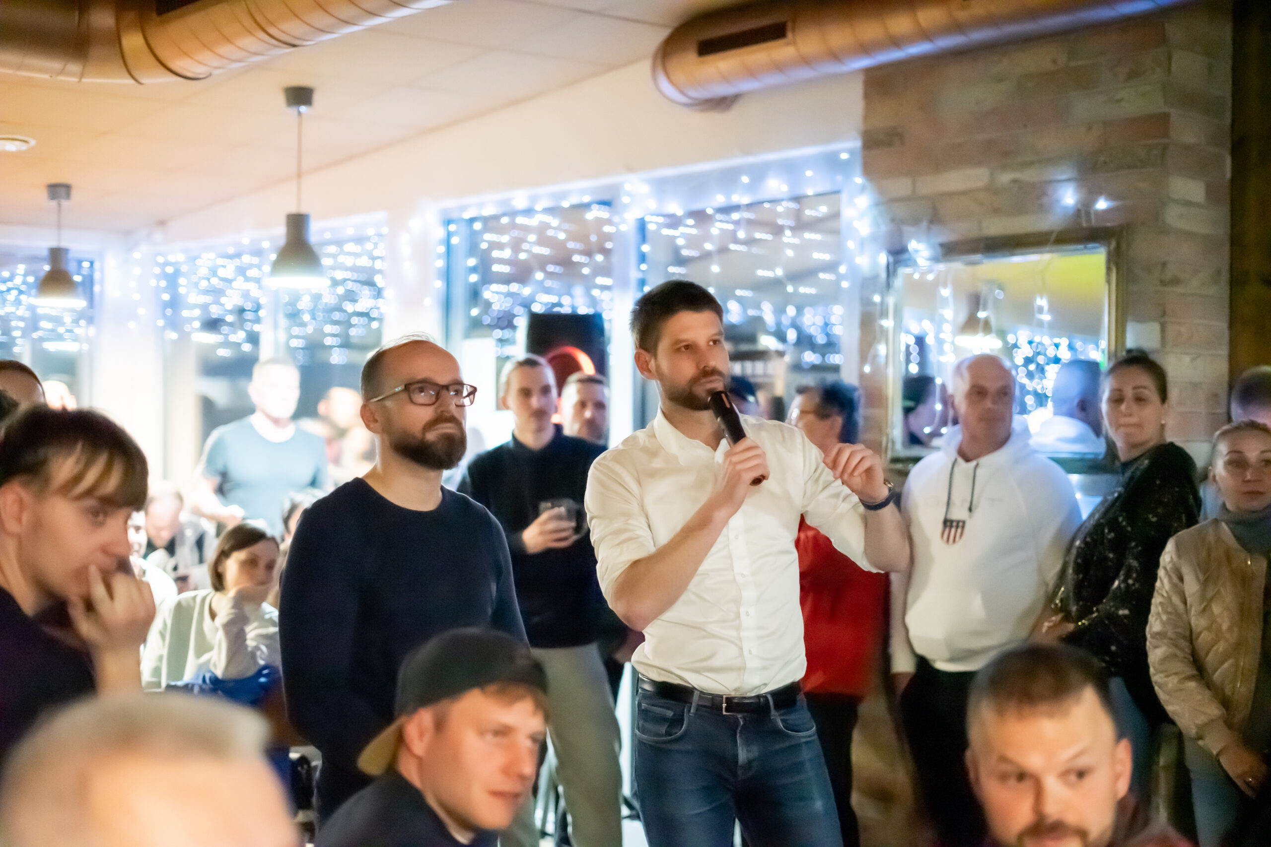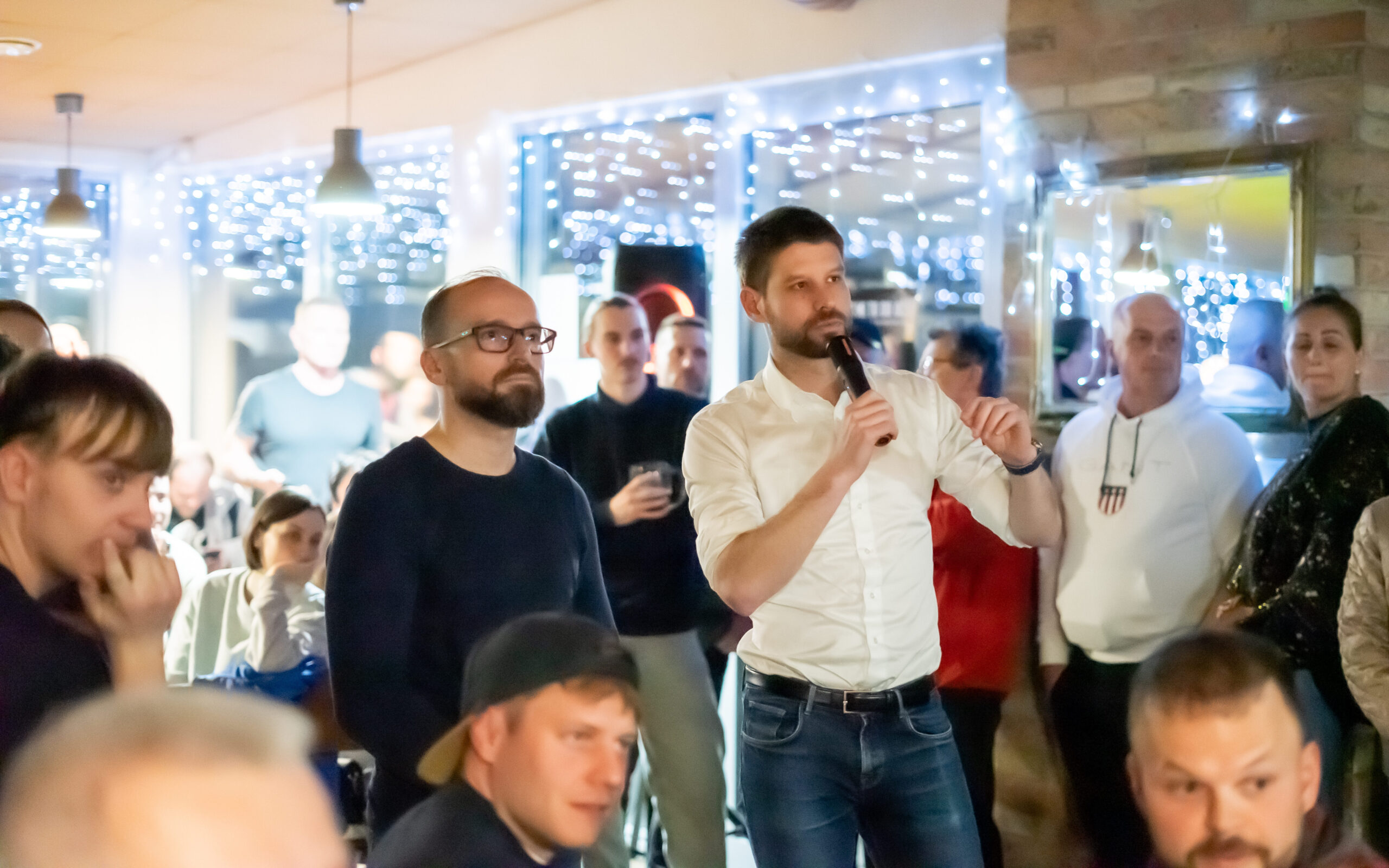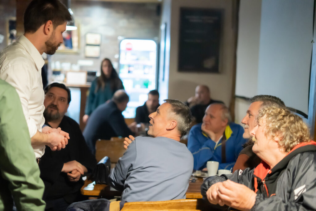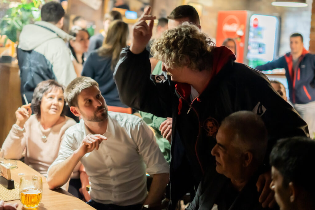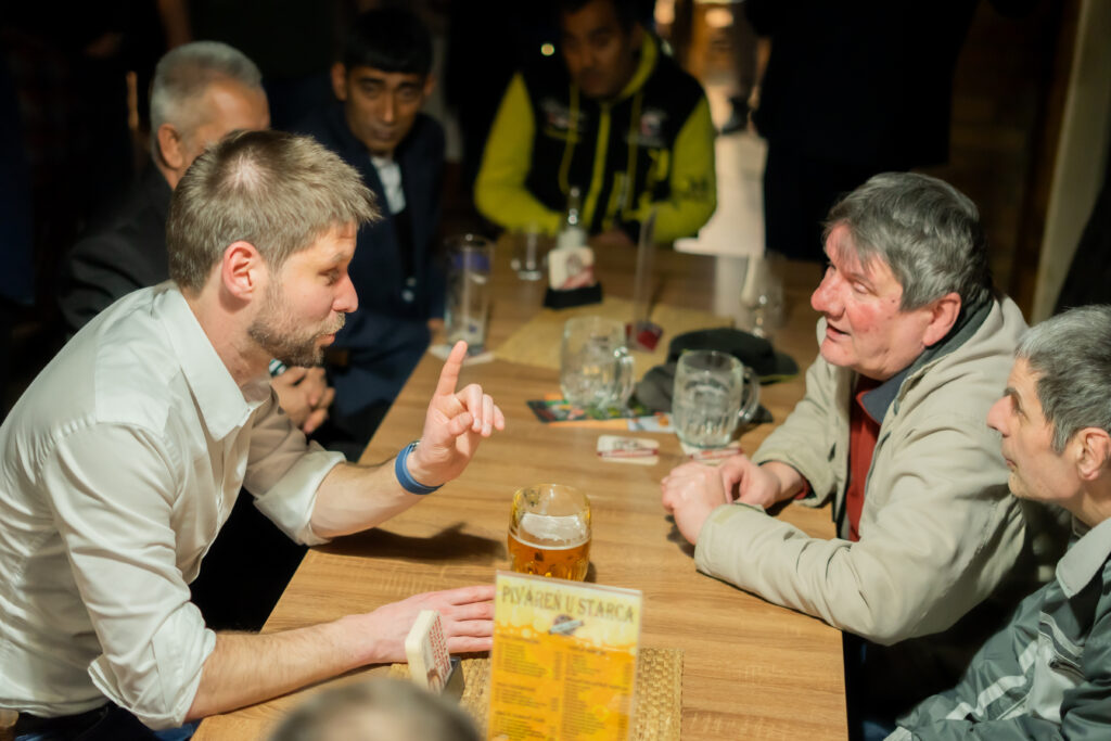Ako prvého sme sa opýtali práve domáceho kandidáta Romana Vaľa, ako vníma takéto stretnutia s verejnosťou. „Tento nápad vnímam ako dobrú aktivitu – stretávať sa s ľuďmi, aj s tými, ktorí s nami nesúhlasia. Máme možnosť stretnúť sa od ľavičiarov po pravičiarov. Nemusíme sa mať radi, ale rozprávať sa musíme vedieť,“ povedal. Atmosféru večera podľa neho vystihuje aj samotná účasť: „Výsledok vidíme – plná krčma, od mladých po seniorov, Maďarov, Rómov, Slovákov, ľavičiarov, pravičiarov – a všetci sme si vedeli nájsť spoločnú reč.“