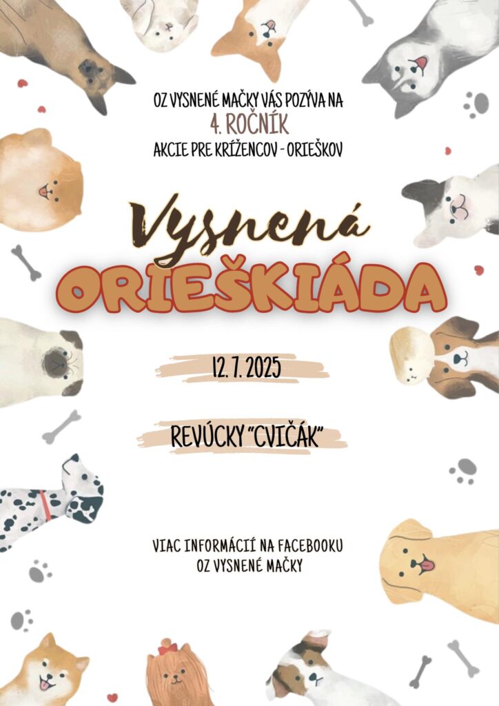 Nie všetky dobré skutky musia mať fúzy a labky — niekedy stačí jeden deň plný smiechu, štekotu a priateľstva. Presne taký sľubuje Orieškiáda, ktorá sa v Revúcej na cvičáku uskutoční už po štvrtý raz. A hoci by sa na prvý pohľad mohlo zdať, že ide len o veselú akciu pre psíkov, pravda je oveľa hlbšia – výťažok z podujatia totiž pomáha opusteným mačkám.