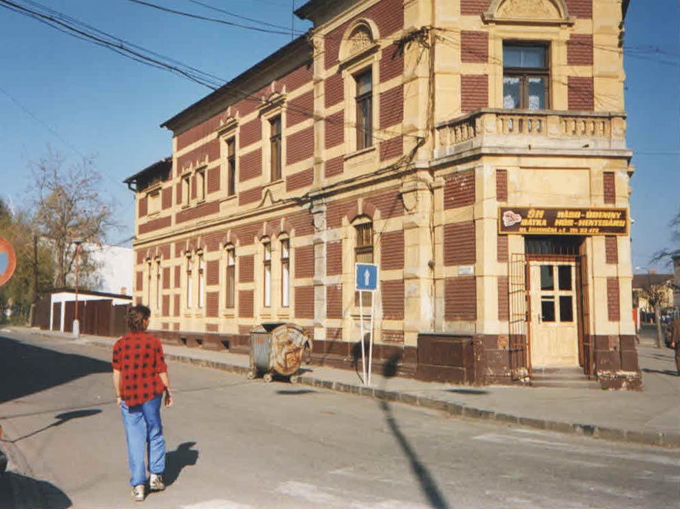 „Asymetrická budova na Železničnej ulici bola dokončená v roku 1902, objavuje sa na mnohých pohľadniciach Rimavskej Soboty a rovnako patrí aj do pamiatkovej zóny mesta,“ hovorí majiteľ budovy Zsolt Jončev, ktorý je potomkom štvrtej generácie rodiny žijúcej v tejto budove. Podľa jeho slov je budova zaujímavá aj vonkajšou výzdobou. „Má secesnú výzdobu nad kamenným rohovým balkónom, v nárožnom priečelí s plastickou ornamentikou okna s motívmi kosatcov,“ priblížil Zsolt, podľa ktorého bola budova pôvodne postavená pre židovskú rodinu Andrássyovcov. „Práve oni mali v budove fotoateliér, krčmu a holičstvo,“ poznamenal a dodal, že jeho prastarý otec Peter Oceľ sa podieľal na jej výstavbe.
