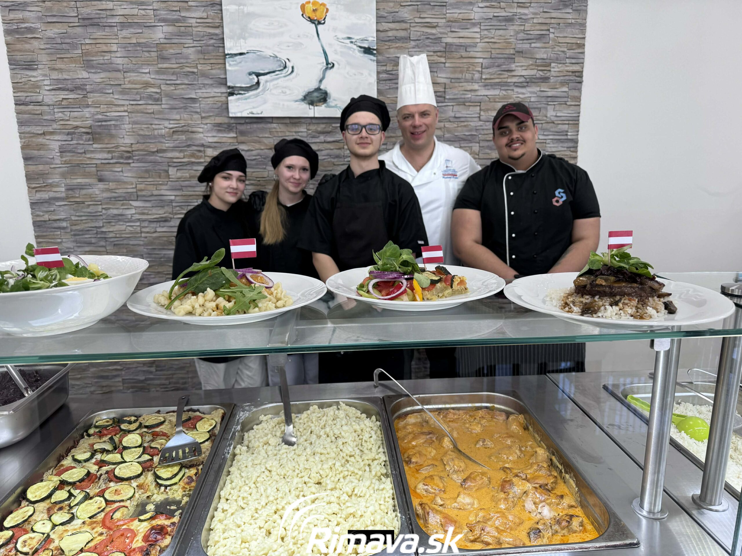 Pri príprave jedál pomáhajú aj študenti školy, ktorí tak získavajú cenné skúsenosti priamo v praxi.