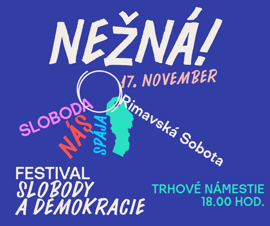 Rimavská Sobota si aj tento rok pripomenie 17. november ako symbol odvahy, jednoty a túžby po slobode. Spomienkové zhromaždenie s názvom „Nežná – oslava slobody a demokracie“ sa uskutoční v pondelok 17. novembra o 18:00 hod. na Trhovom námestí, priamo pred budovou bývalej tabakovej továrne – na mieste, kde sa v roku 1989 konali prvé zhromaždenia miestnych občanov za slobodu.