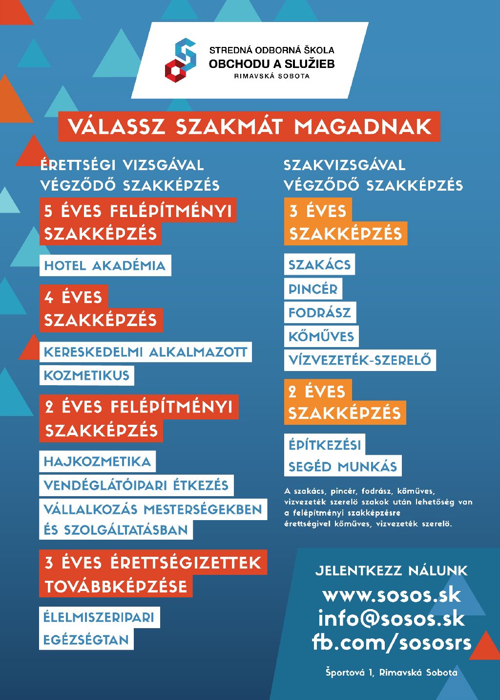 Viac informácií o odboroch, ktoré ponúka Stredná odborná škola obchodu a služieb v Rimavskej Sobote, nájdete na jej oficiálnej webovej stránke sosos.sk. Pre viac informácií volajte na t. č. 047 5812011 alebo školu kontaktuje e-mailom na [email protected]. Adresa SOŠOS je Športová 1, 979 01 Rimavská Sobota.