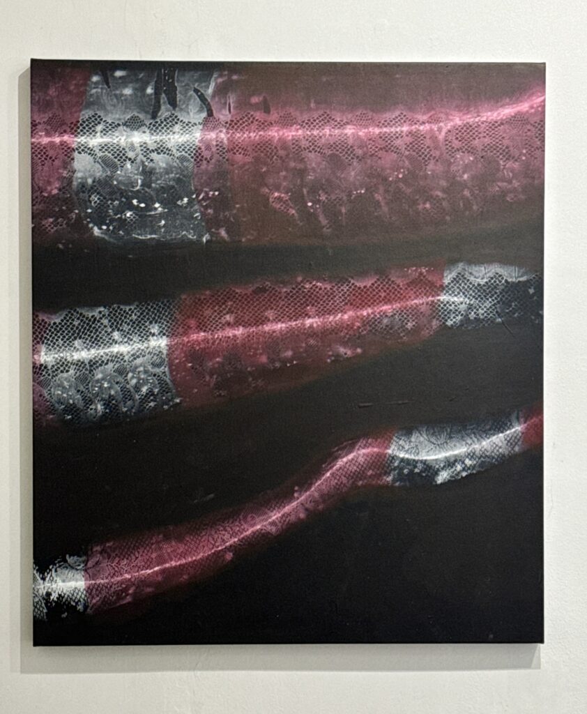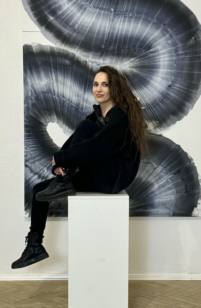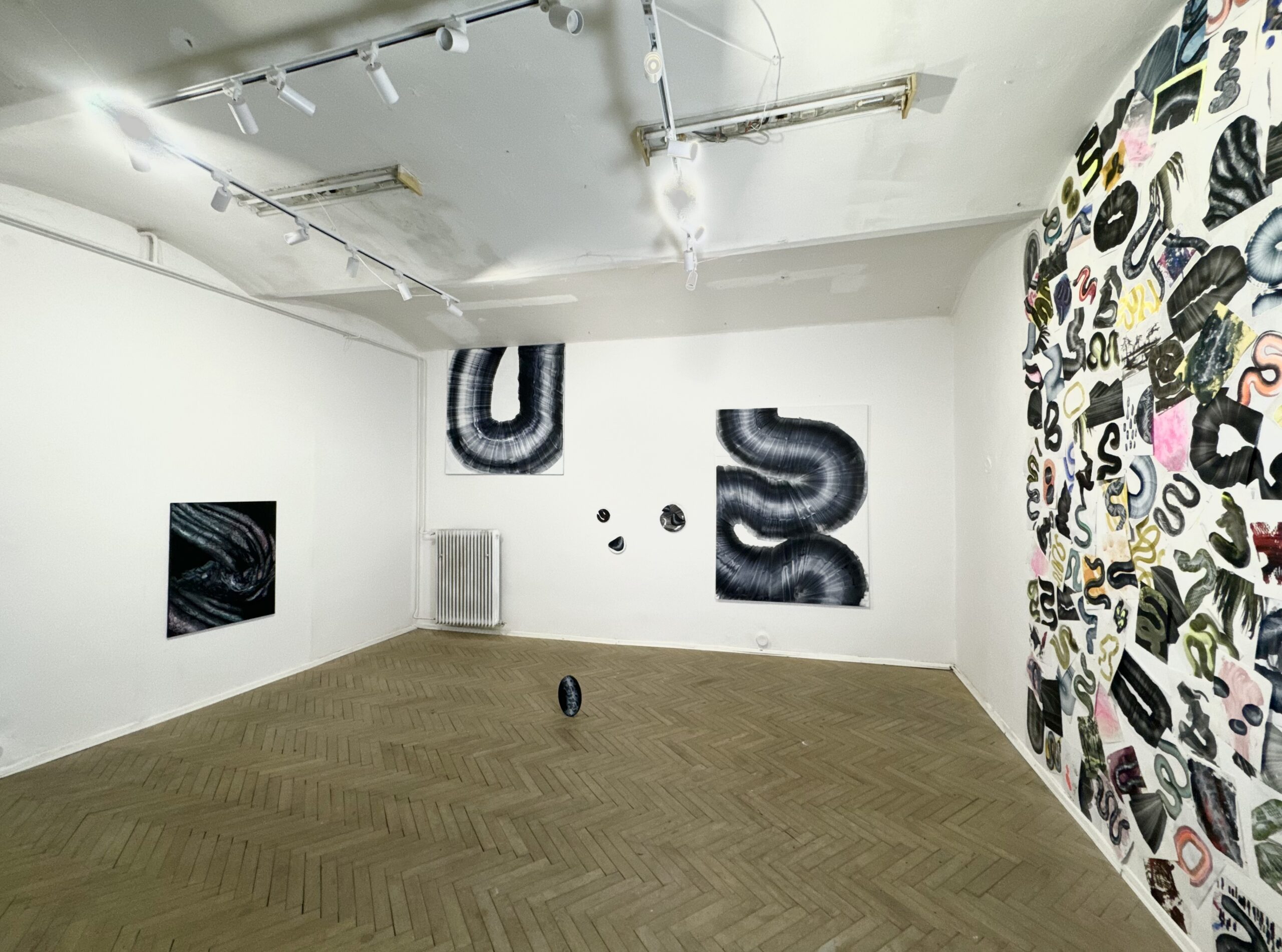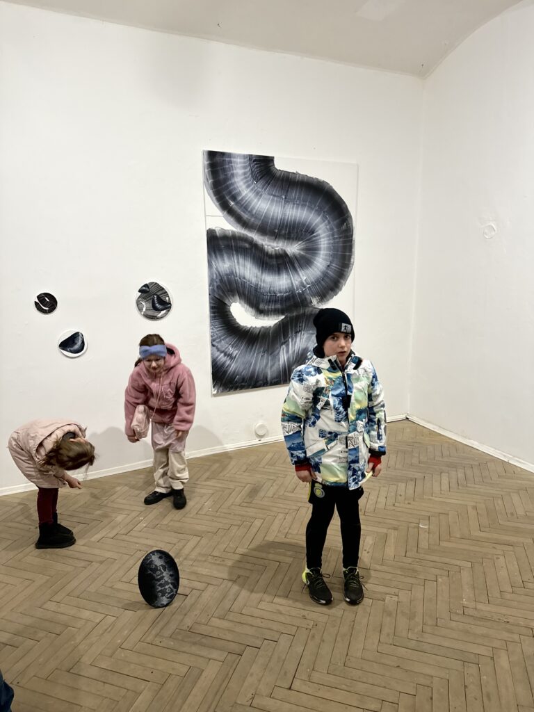 Zaujímavým aspektom výstavy je aj voľba formátov. Lucia sa neobmedzuje len na tradičné rektangulárne plátna, ale zahrňuje aj kruhové a oválne maľby, čím ešte viac posilňuje pocit dynamiky a fluidity. Modifikované hrúbky rámov vytvárajú efekt prelínania sa medzi maľbou a objektom, čo podčiarkuje interaktívny charakter jej práce.