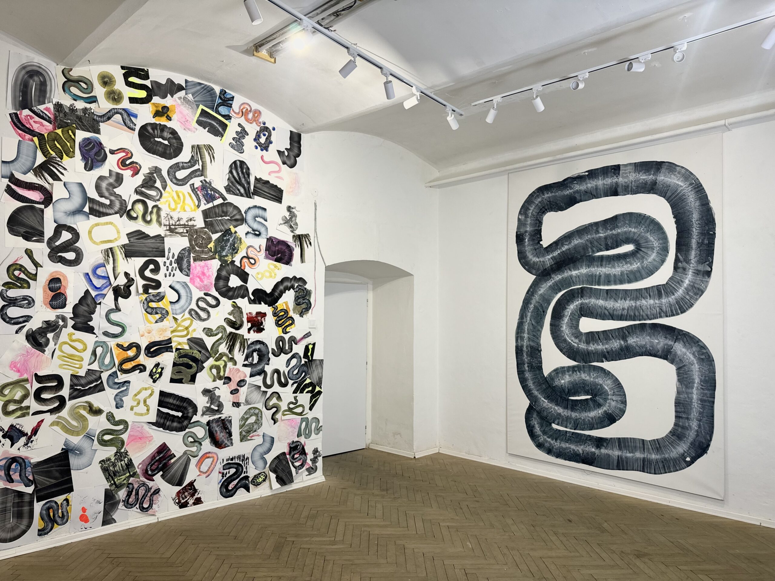 "Pred pár rokmi som sa začala zaoberať témou telesnosti a človeka ako živej tekutej hmoty. Všetky moje témy a výstavy vychádzajú z konkrétnych zážitkov," povedala na úvod Lucia. "Aktuálna výstava Rok Hada sa zameriava na tému ľudskej kože. Pred tromi rokmi som začala spracúvať tému ľudskej kože, a čím viac som sa touto témou zaoberala, tým viac sa ukazovalo, že moje experimenty v ateliéri začínajú pripomínať hady. Okolie mi často hovorilo o animálnych tvaroch, ktoré som vytvárala, a podvedome som si to prepojila."