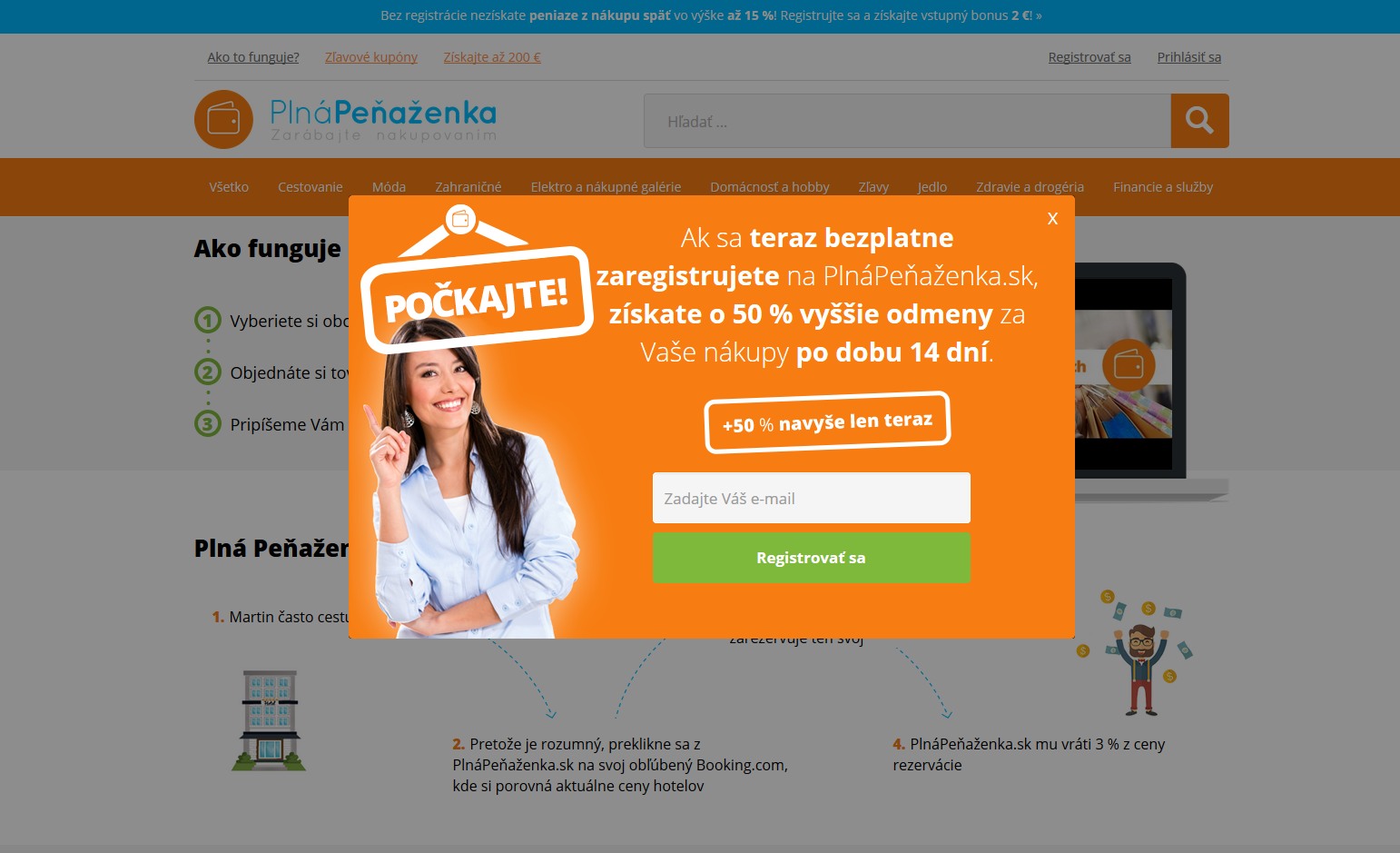 Plnapenazenka.sk ponúka klasickú registráciu zadaním emailu aj hesla. Rovnako ponúka možnosť registrácia cez facebook. Po zadaní údajov ste hneď registrovaný. Aj tu mi bol ponúknutý bonus vo forme 50% zvýšenie odmeny na obdobie 14 dní.