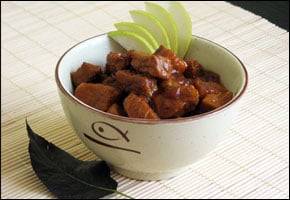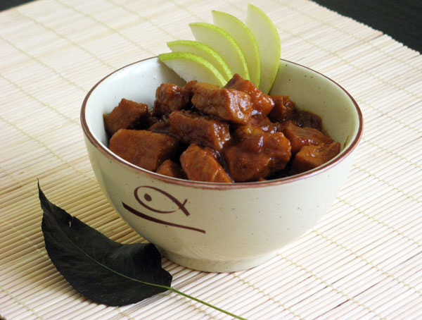 Pri našom dome rastie stará hruška, na ktorej rastú síce malé, ale chutné hrušky. Je ich toľko, že nevieme čo s nimi. Preto sme sa chytili inšpirácie Nového času a navarili karé s ázijskými koreniami kombinované s čerstvými hruškami. Tie vytvorili hustú, sladkastú korenistú šťavu, ktorá sa k mäsu výborne hodí. Tento recept môže byť ináč výborný aj s iným typom mäsa, karé sa nám zdalo byť trošku suché.