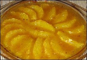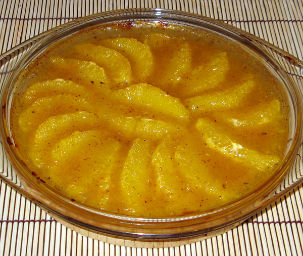 Je to také jednoduché: pomaranč v pomarančovej šťave, so štipkou orientálnych korení, na kratučko zapečené. Vyskúšali sme ich nedávno, keď mali prísť kamaráti. Problém bol, že sme boli opatrní a spravili len menšiu porciu. Tá sa do príchodu hostí tajomným spôsobom vytratila. Sorry, friends 🙂.