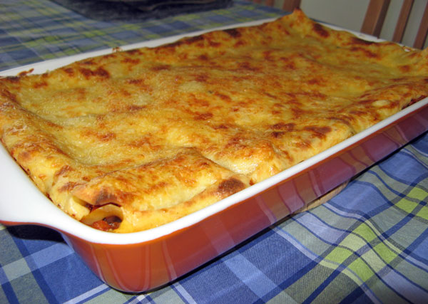 Predpokladám, že lasagne netreba predstavovať. Po pizze a špagetách je to hádam najznámejšie talianske jedlo v našich končinách. Kombinácia mäsa, paradajkovej omáčky, cestovín a syru nemôže byť zlá, preto ju má asi každý rád, samozrejme vrátane nás. Najprv sme ju jedli len v reštauráciách, potom sme sa rozhodli vyskúšať ju doma. No začali sme nesmelo, s polotovarom z krabice, naivne sme si mysleli, že je to príliš ťažké jedlo. Po istom čase sme sa však nevyhnutne museli dopracovať k 100% domácej verzii, ktorú vám teraz predstavíme (dobre, možno len 85% domáca, cestoviny sme si nevyrábali sami 🙂 ).
