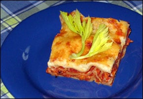 - Na plátky naberiem vrstvu mäsovej omáčky, na ktorú znovu naložím cestoviny, a znovu omáčku, pokračujem, kým sa mi neminie omáčka, končím vrstvou cestoviny