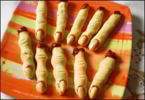 Recept našej čitateľky Kamily, zverejnený na našej fanúšikovskej stránke na sociálnej sieti Facebook. Výborné pre hororovo-halloweenovksy ladené hostiny 🙂