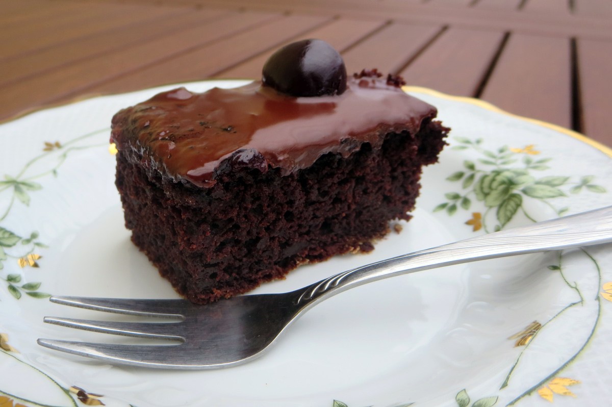 Mäkký, od jabĺk šťavnatý perník ochutený kakaom, sladkou čokoládovou polevou a vyvážený kyslastým ríbezľovým lekvárom.