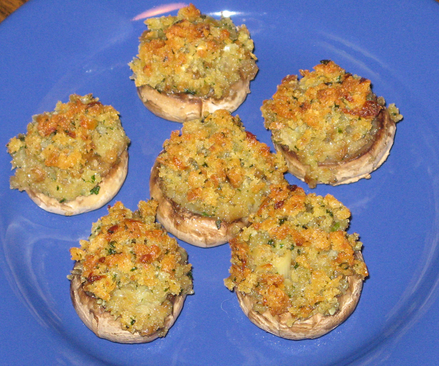 Hanba, nehanba, plnené šampiňóny sme začali variť s náhradou Stiltonu, našou klasikou, Nivou (teraz sa asi všetci Briti mračia). Plnka pozostáva z mixu nivy, chleba, masla a byliniek. Toto jedlo je nielen rýchle, jednoduché a chutné, ale naviac aj výborne vyzerá. Veľmi sa preto hodí ako predjedlo, prípadne ako jednohubky, keď máte návštevu, ktorú chcete svojimi kulinárskymi schopnosťami ohúriť.