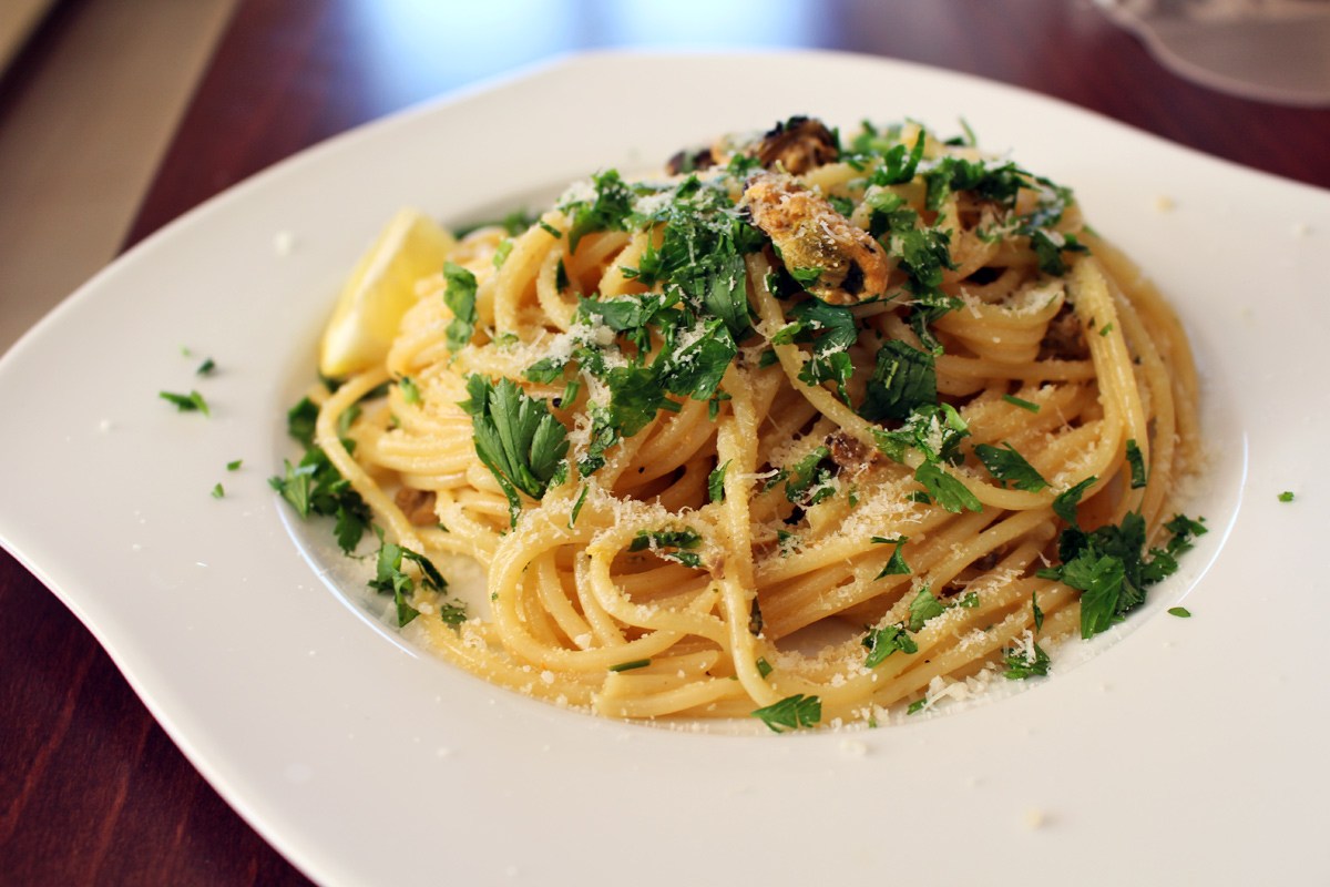 Špagety s mušľami v smotanovo – citrónovej omáčke