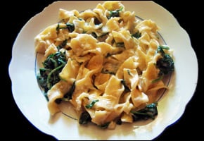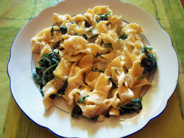 Dnešný recept sme dostali od našej čitateľky, spolugurmánky, Janky R., ktorá vám pripravila cestoviny s jemným baby špenátom (človek sa vždy učí, doteraz som ani nevedel, že baby špenát existuje 🙂 ) doplnené bohatou syrovou omáčkou. Vyzerá na pomerne rýchle a chutné jedlo na každú príležitosť. Dobrú chuť, priatelia, radi privítame vaše ďalšie recepty a skúsenosti.