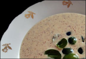 - Baguette/rožky dáte do hrnčeka, polejete sherry-octom a pridáte aj 1 dl studenej vody. Hrnček dáte na 30 minút do chladničky. Po polhodine pridajte mandle, rozdrvený cesnak, 1 dl olivového oleja, 1,5 dl vody a 2 kávovej lyžice soli. Pomiešajte a na noc dajte do chladničky.