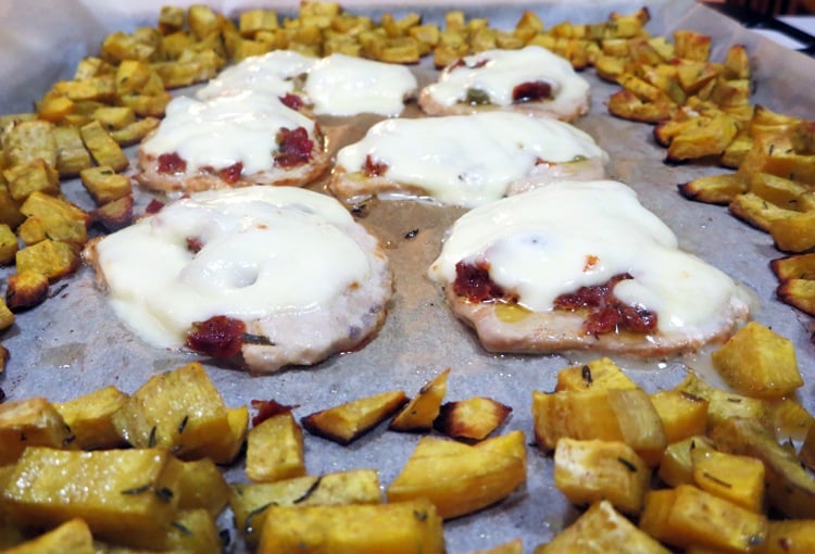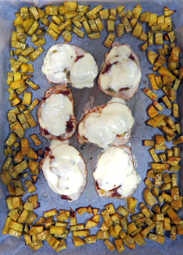 Toto je recept, ktorý sa na prvý pohľad zdá, že by mal mať nejaký echt taliansky názov, ako carne di maiale e pomodoro e ďalšie veci. V skutočnosti však patrí k našim výmyslom z kategórie "čo chladnička dala" a "som na diéte ale som hladný a chcem jesť niečo normálne". Tak sme si vytvorili toto chutné, rýchle a pomerne ľahké jedlo inšpirované talianskou kuchyňou, kde sa spája mäso s okorenenými sušeným paradajkami, mozzerellou a k tomu zdravé sladké zemiaky. Myslím, že vám bude chutiť.