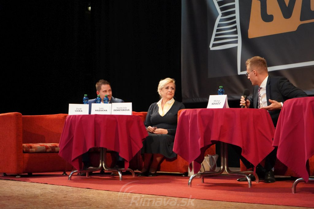 RIMAVSKÁ SOBOTA - Približne dve hodiny odpovedali kandidátka a kandidáti na primátora na otázky politického moderátora Michala Kovačiča. Svoje otázky mohli klásť aj prítomní občania. Aj táto diskusia mohla pomôcť pri rozhodovaní, koho pri voľbách podporiť.