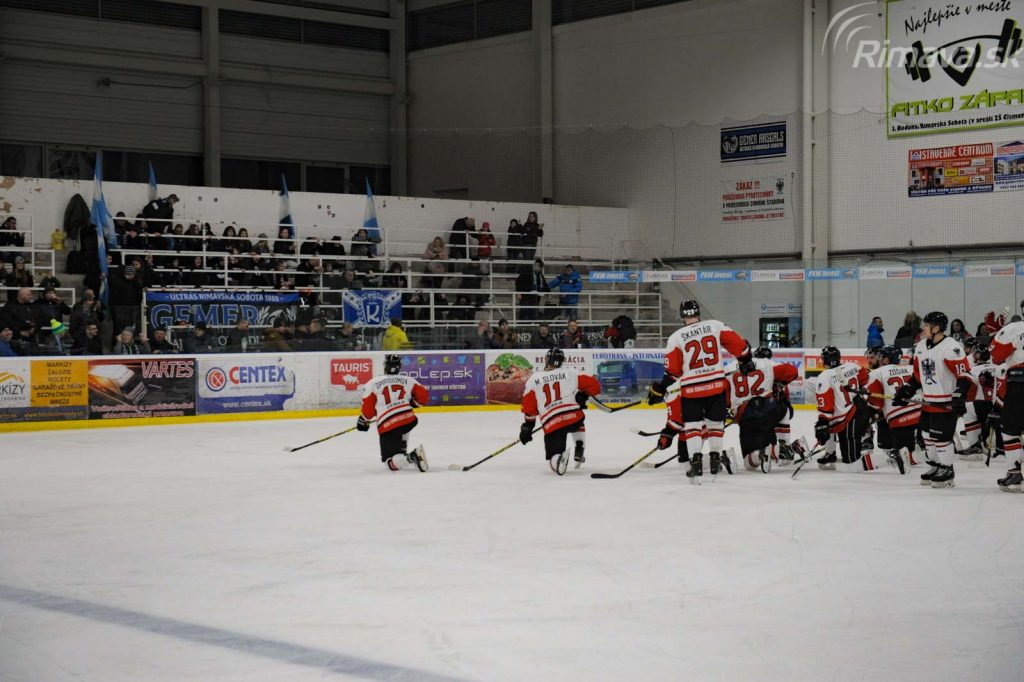 Úvod východnej finálovej série hráčom HKM Rimavská Sobota nevyšiel. V prvom zápase prehrali doma s Humenným vysoko 2:7. Aj keď boli v prvej tretine zápasu domáci HKM aktívnejší, gólovo sa im nedarilo presadiť. Už v štvrtej minúte dostali gól z hokejky Filipa Vaška. Nevyužili ani dve presilovky. Naopak, hostia ešte do konca úvodnej tretiny prekonali brankára Križana a zvýšili stav strelami Ištocyho a Hamráčeka na 0:3.