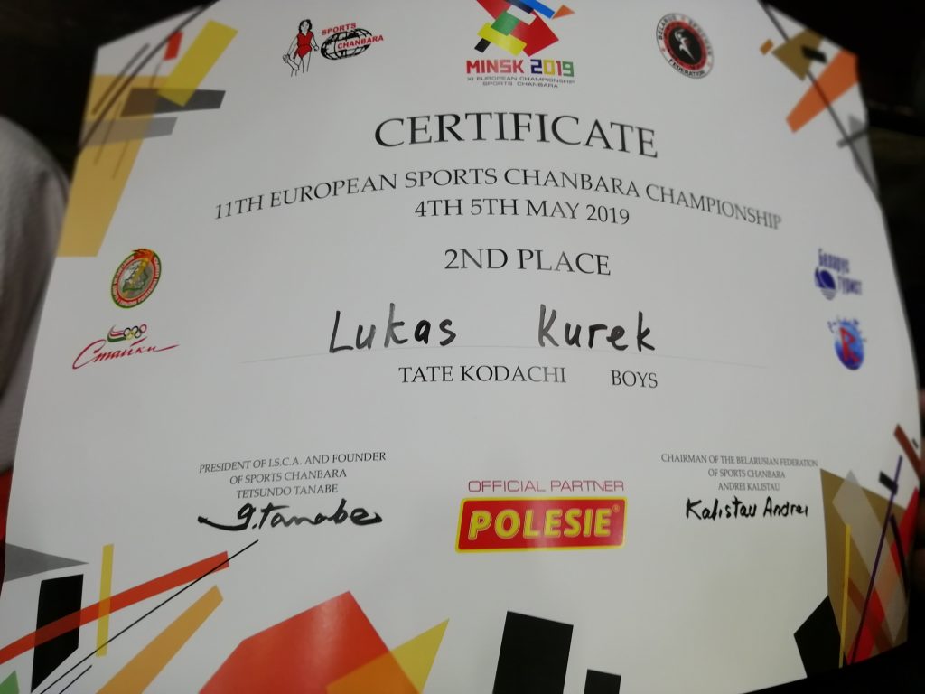 Druhý slovenský reprezentant Lukáš Kurek vybojoval taktiež po prvotných zaváhaniach vo svojej obľúbenej disciplíne tate kodachi (krátky meč-štít) striebornú medailu, keď prehral vo finále len s neskorším absolútnym šampiónom (Grandšampiónom) z Talianska. V tejto kategorii štartovalo 21 pretekárov. Obidvaja reprezentanti Tomáš i Lukáš pôsobia v rimavskosobotskom klube Falcon TKD Rimavská Sobota a bola to pre nich „prvá” veľká medaila.