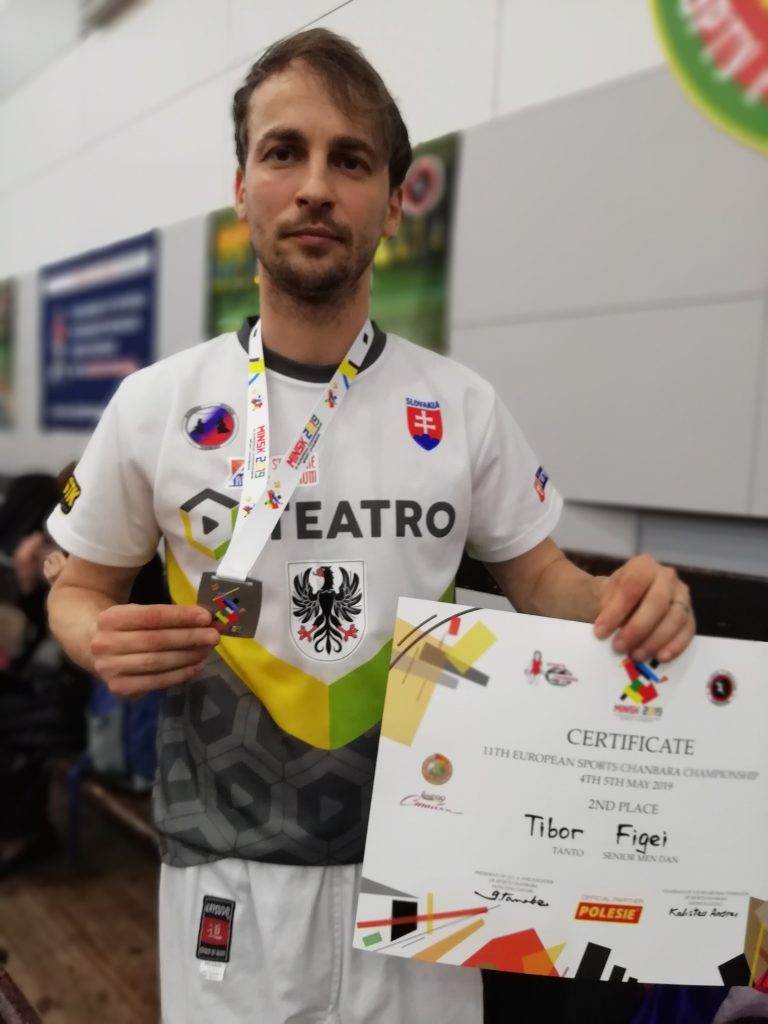 V nedeľu 5. mája štartovali kategórie seniorov v kategóriách kyu (nižšie stupne) a DAN (čierne pásy) v individuálnych zápasoch, kde sa nám podarilo získať ešte jednu medailu. Tibor Figei z Rimavskej Soboty získal pre slovenskú reprezentáciu v kategórii čiernych pásov (DAN,18-39r.) historickú striebornú medailu v disciplíne tanto (dýka). V prvých dvoch kolách zvíťazil nad ruskými reprezentantmi, až nakoniec prehral len vo finále s úradujúcim majstrom Európy tejto disciplíny z Talianska po niekoľkominútovom boji. V tejto kategórii štartovalo 34 športovcov. Pre rimavskosobotského reprezentanta to bola už desiata medaila z ME, MS, EH a SH.