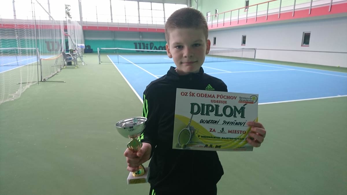 Púchov bolo uplynulý víkend dejiskom halových majstrovstiev stredoslovenského regiónu mladších žiakov v tenise. Turnaja sa zúčastnilo 22 pretekárov, medzi ktorými bol aj odchovanec mestského tenisového klubu Rimavská Sobota Oliver Pivník. V dvojhre sa umiestnil na treťom mieste a vo štvorhre spolu so Žilinčanom Kompišom získal rovnako bronz.