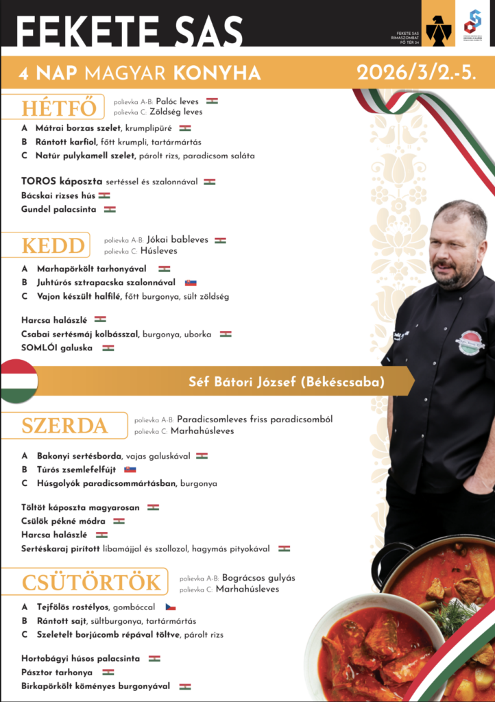 Ak máte radi výrazné chute, domáce recepty a kuchyňu, ktorá sa neponáhľa, 4 dni maďarskej kuchyne v Čiernom orlovi by ste si nemali nechať ujsť. Stačí prísť, sadnúť si a nechať sa uniesť vôňami a chuťami, ktoré spájajú tradíciu, remeslo a radosť z dobrého jedla.