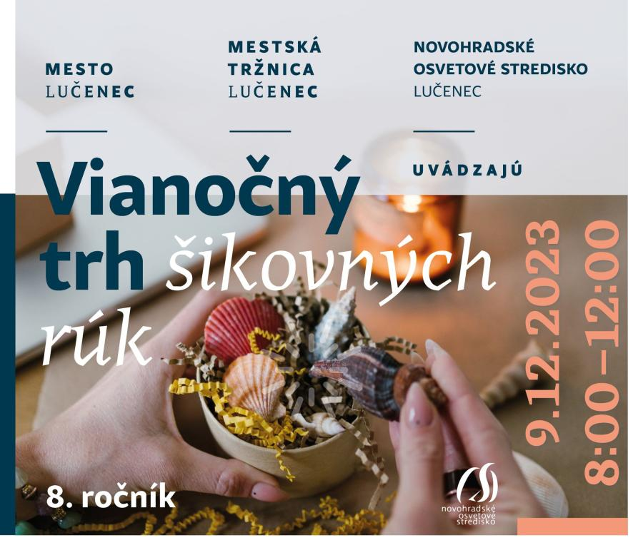 Mesto Lučenec, Mestská tržnica Lučenec a Novohradské osvetové stredisko Vás srdečne pozývajú na 8. ročník podujatia Vianočný trh šikovných rúk, ktorý sa bude v tradičnom predvianočnom čase konať v Mestskej tržnici Lučenec 9. decembra.