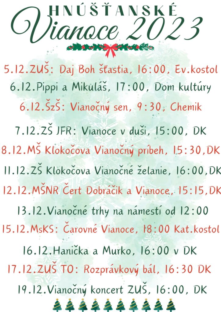 "MsKS v Hnúšti vás srdečne pozýva na naše vianočné akcie plné radosti, tepla a atmosféry, kde spoločne zažijeme nezabudnuteľné chvíle plné čaru a veselých okamihov. Pridajte sa k nám a oslávte s nami túto nádhernú sviatočnú sezónu v Hnúšti. Pretože nastáva čas Vianoc a práve vianočný čas je o dobrej nálade, pohode a o tom, aby mal každý každého rád," pozýva Diana Vojenčiaková, riaditeľka MsKS a celý tím.
