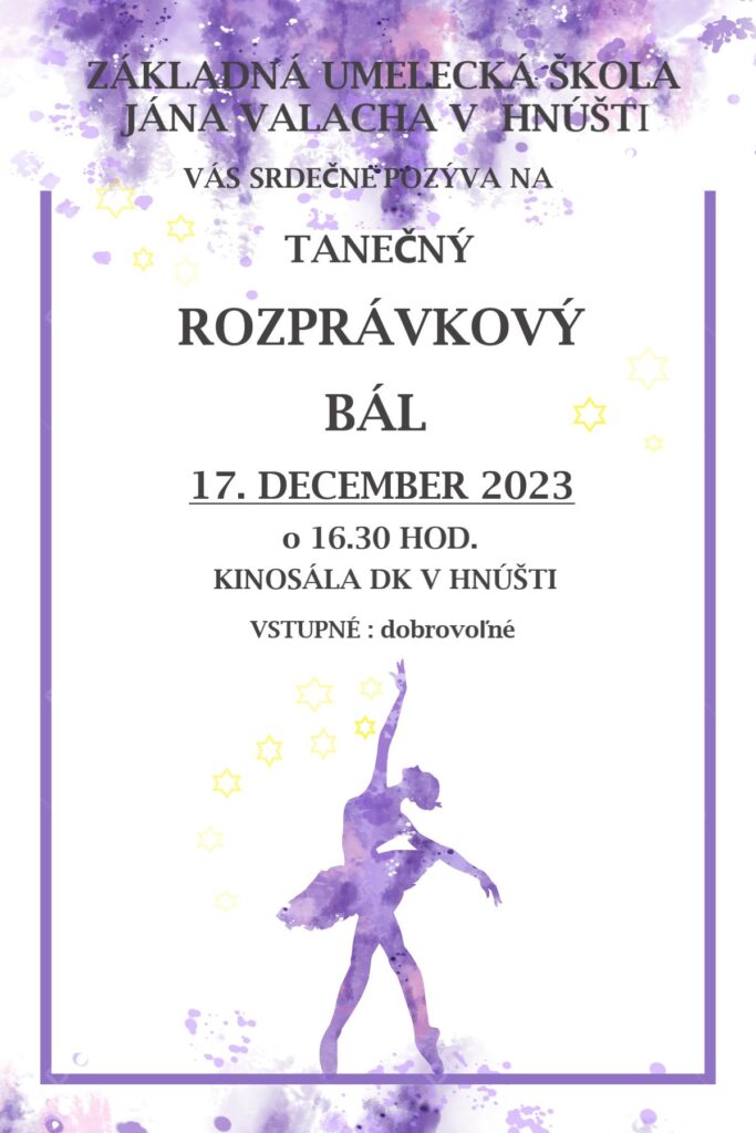 Na tretiu adventnú nedeľu, 17. decembra, sa o predstavenie postarajú deti z tanečného odboru zo ZUŠ J. Valacha. V Dome kultúry vám predvedú svoj "Rozprávkový bál".