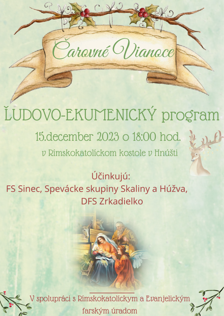 O dva dni neskôr, 15. decembra, si môžete v rímskokatolíckom kostole vychutnať ľudovo-ekumenický program, ktorý podčiarkne atmosféru sviatkov.