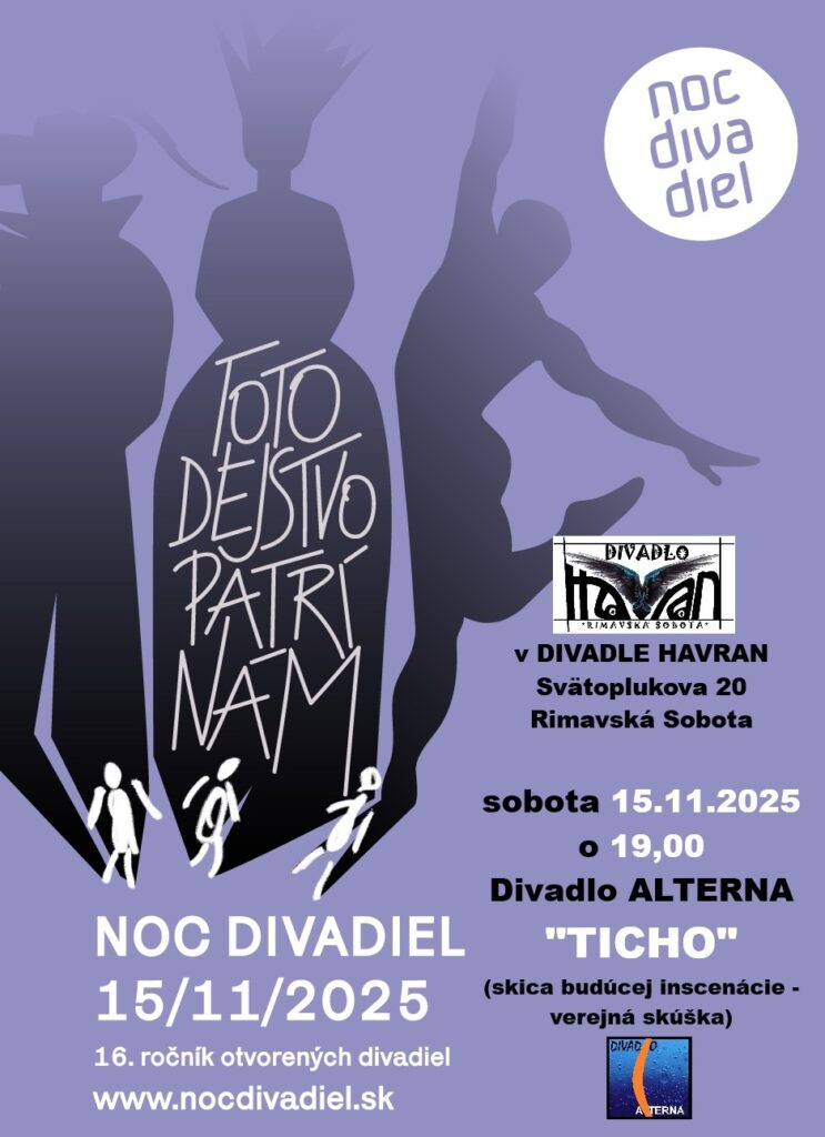 Aj Rimavská Sobota sa po roku opäť zapojí do celoslovenského projektu Noc divadiel, ktorý vytvára priestor pre návštevníkov nazrieť do divadelného zákulisia, objaviť nové príbehy a zažiť tvorivý proces zblízka. Tento rok sa podujatie uskutoční v sobotu 15. novembra 2025 a svoj program pripravilo Divadlo Havran.