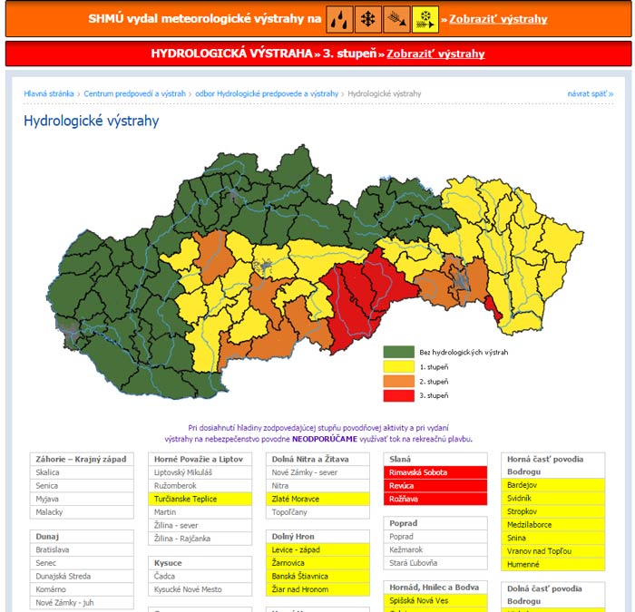snehPo celodennom daždi v okresoch Rimavská Sobota, Rožňava a Revúca vyhlásil Slovenský hydrometeorologický ústav v povodí rieky Slaná hydrologickú výstrahu. Tretí, najvyšší stupeň výstrahy pred povodňami z dažďa, platí od 19-tej hodiny. Informuje o tom SHMÚ. Rušná noc čaká obyvateľov obce Drienčany, kde sa podvečer vylial miestny potok a voda smeruje od kostola k rodinným domom, zaplavená by mala byť aj časť cesty v smere na susedné Budikovany. Na miesto boli privolaní rimavskosobotskí hasiči. „Prší ako z krhly, padá mokrý sneh s dažďom,“ povedal pre Rimava.sk starosta obce Peter Švoňava a dodal, že o 19.00 hod. vyhlásil 3. stupeň. Podľa jeho slov zbierajú vrecia a pripravujú sa na vrecovanie, piesok by im mali priviezť z povodia.