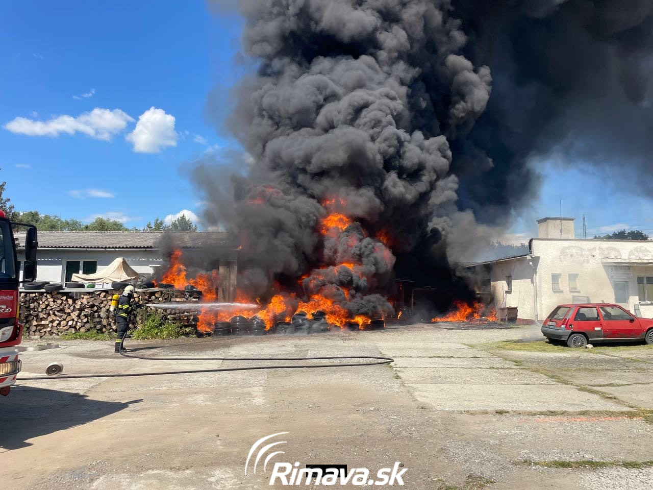 RIMAVSKÁ SOBOTA – Nešťastná udalosť sa stala v pondelok (6. mája) popoludní, kedy v areáli rimavskosobotského autoservisu zasahovalo niekoľko posádok hasičských áut.