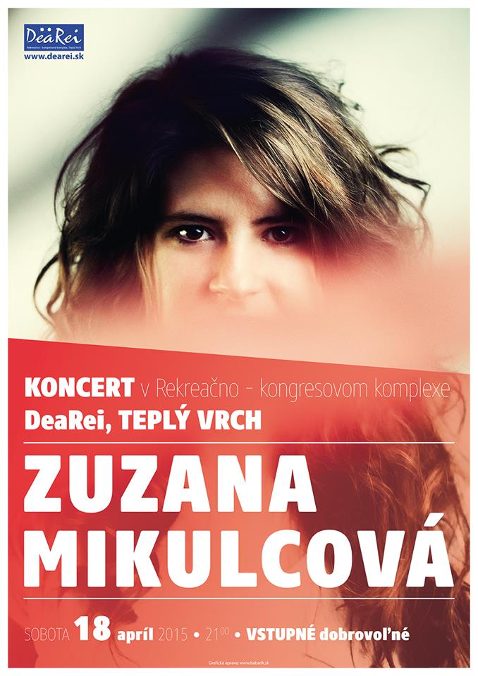 Tretím podujatím v sobotu, 18. apríla, sa bude konať koncert Zuzany Mikulcovej v rekreačnom zariadení DeaRei na Teplom Vrchu.